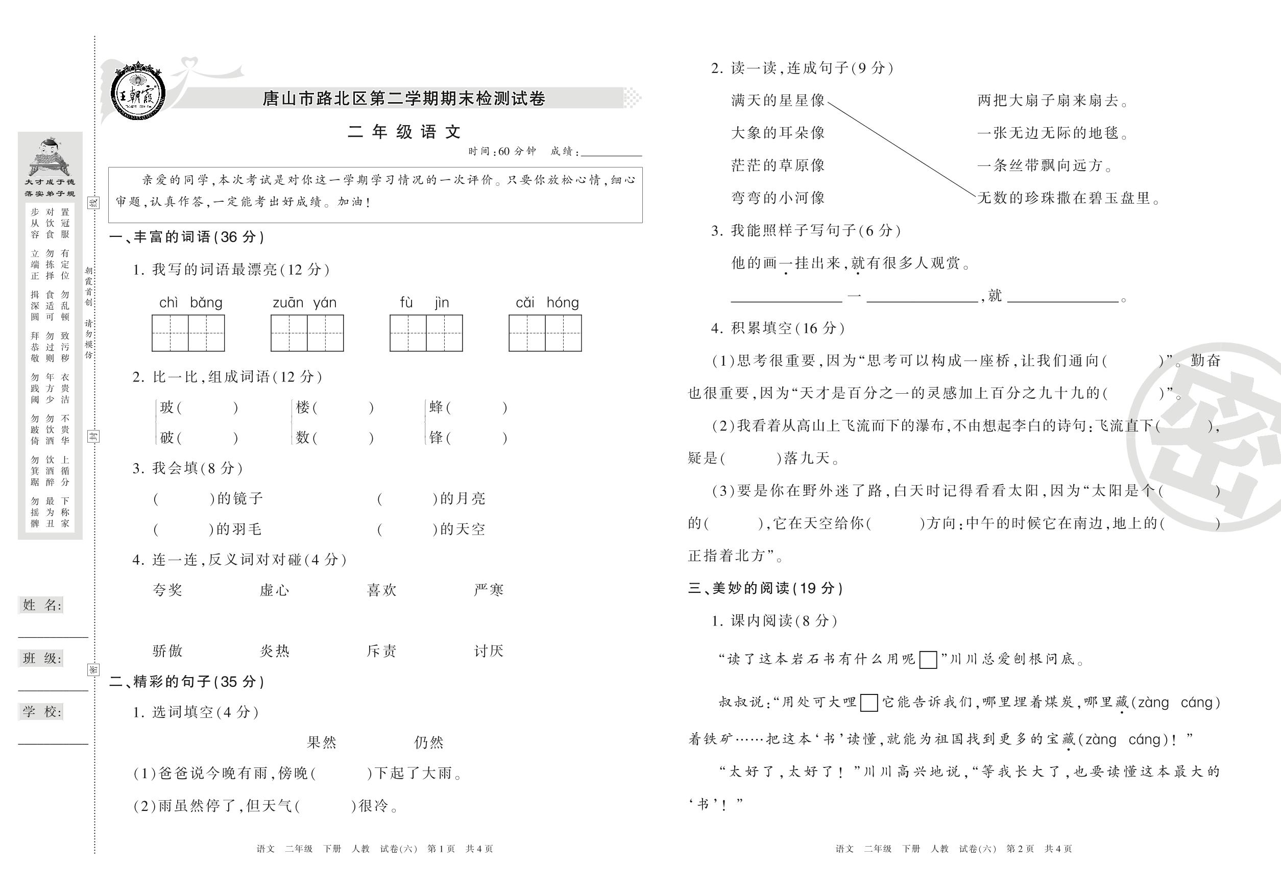 2015-2016学年第二学期唐山市路北区二年级语文试卷(人教版)【6】