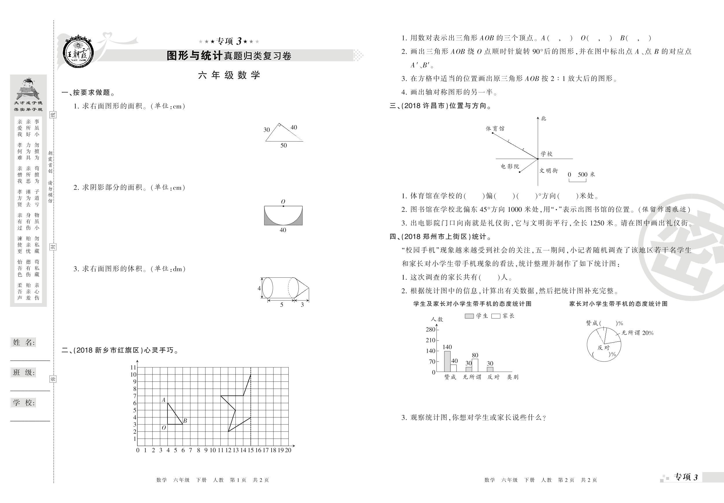 王朝霞期末专项卷——图形与统计、解决问题真题归类复习卷六年级下册数学(人教版)_R21080595317【0】