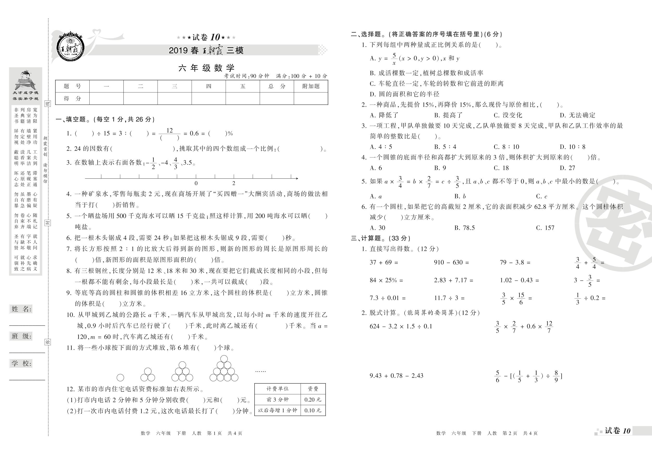 王朝霞期末模拟卷六年级下册数学(人教版)_R21080595352【10】