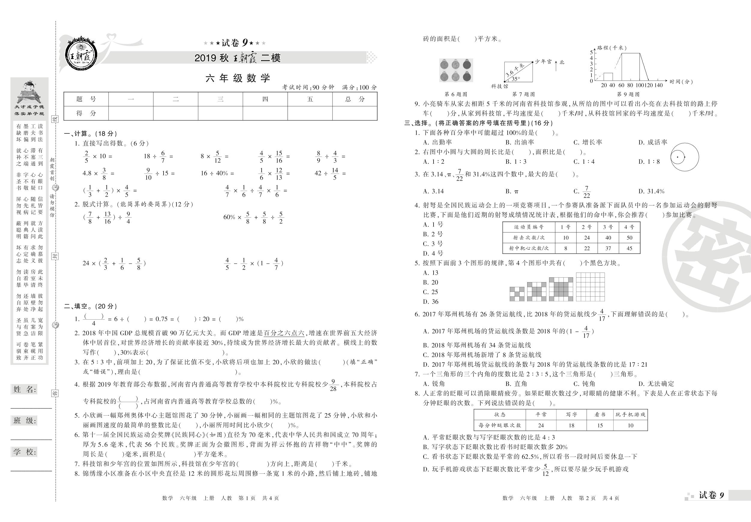 王朝霞期末模拟卷六年级上册数学(人教版)_R21080595533【9】