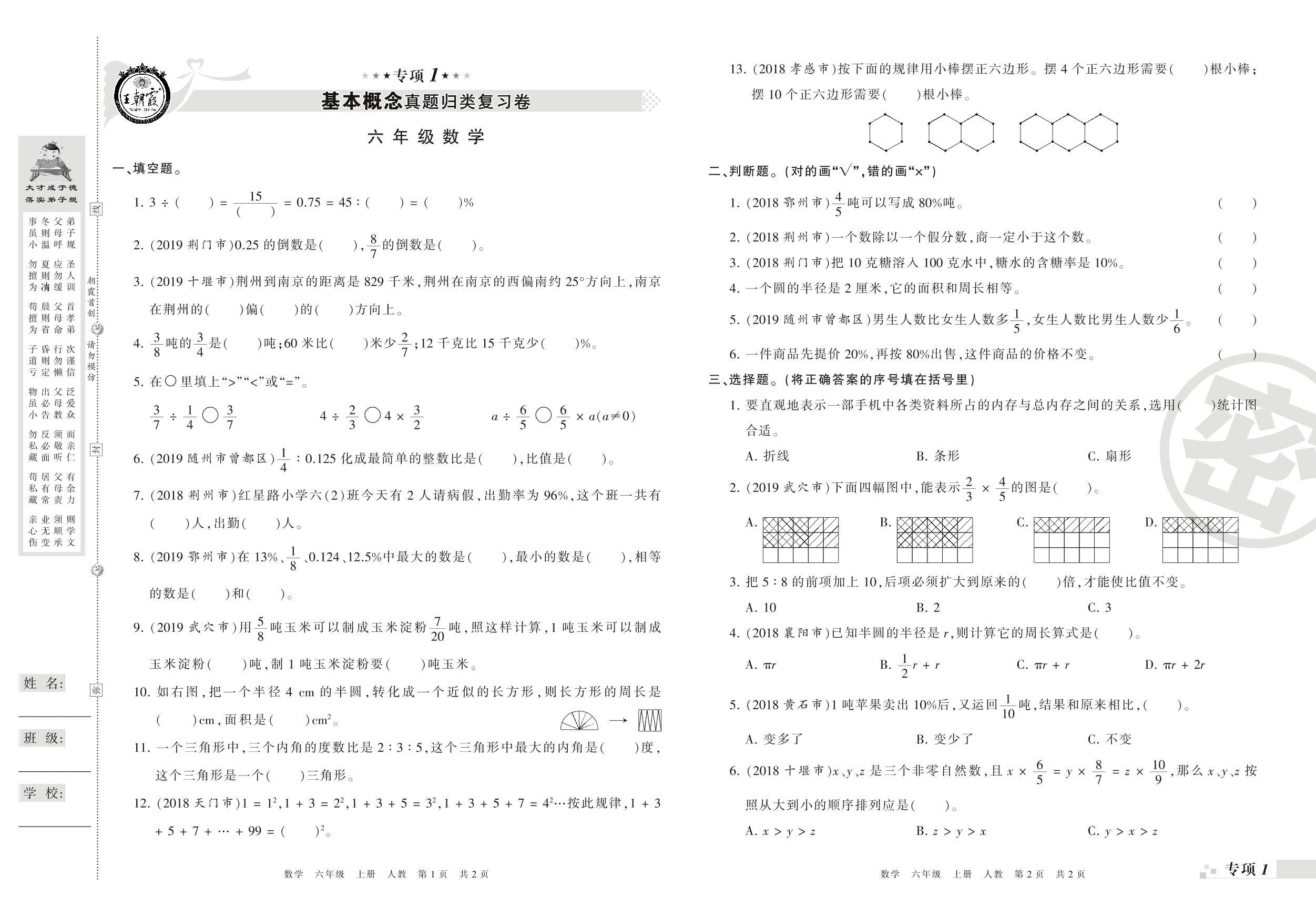 王朝霞期末专项卷——基本概念、计算真题归类复习六年级上册数学(人教版)_R21080595545【0】