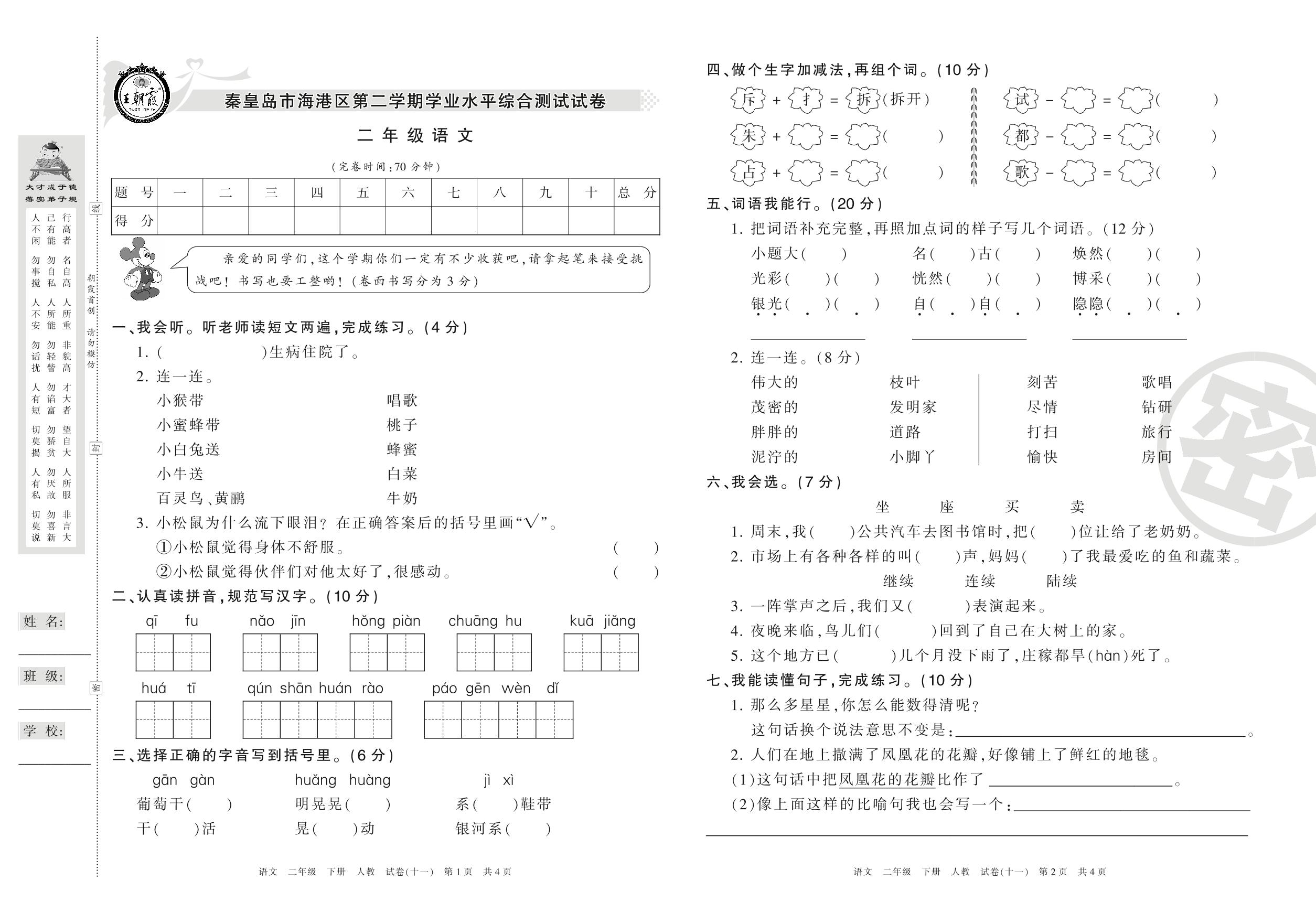 二年级语文人教版下册期末卷