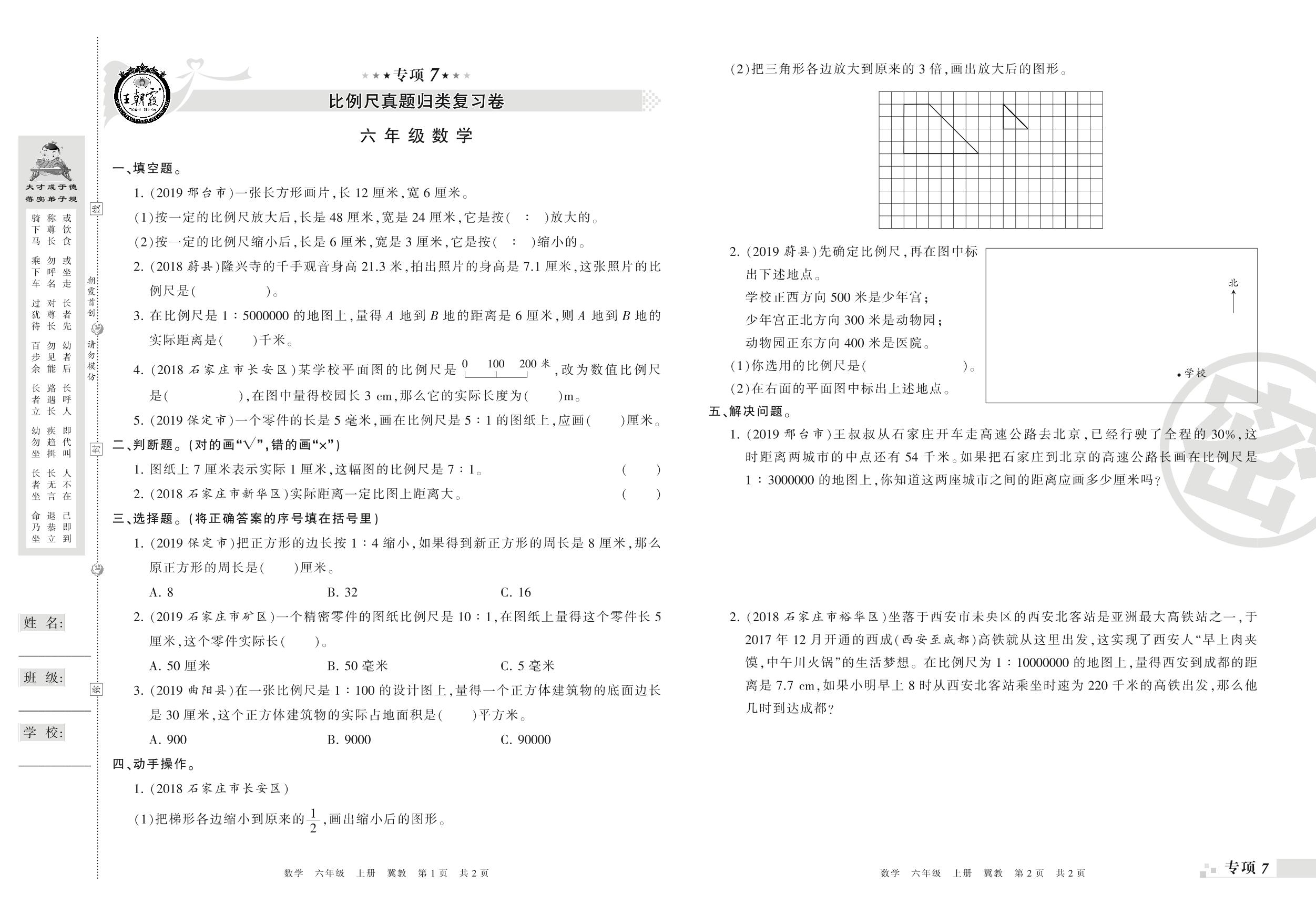 王朝霞期末专项卷——比例尺、扇形统计图真题归类复习六年级上册数学(冀教版)_R21080595624【0】