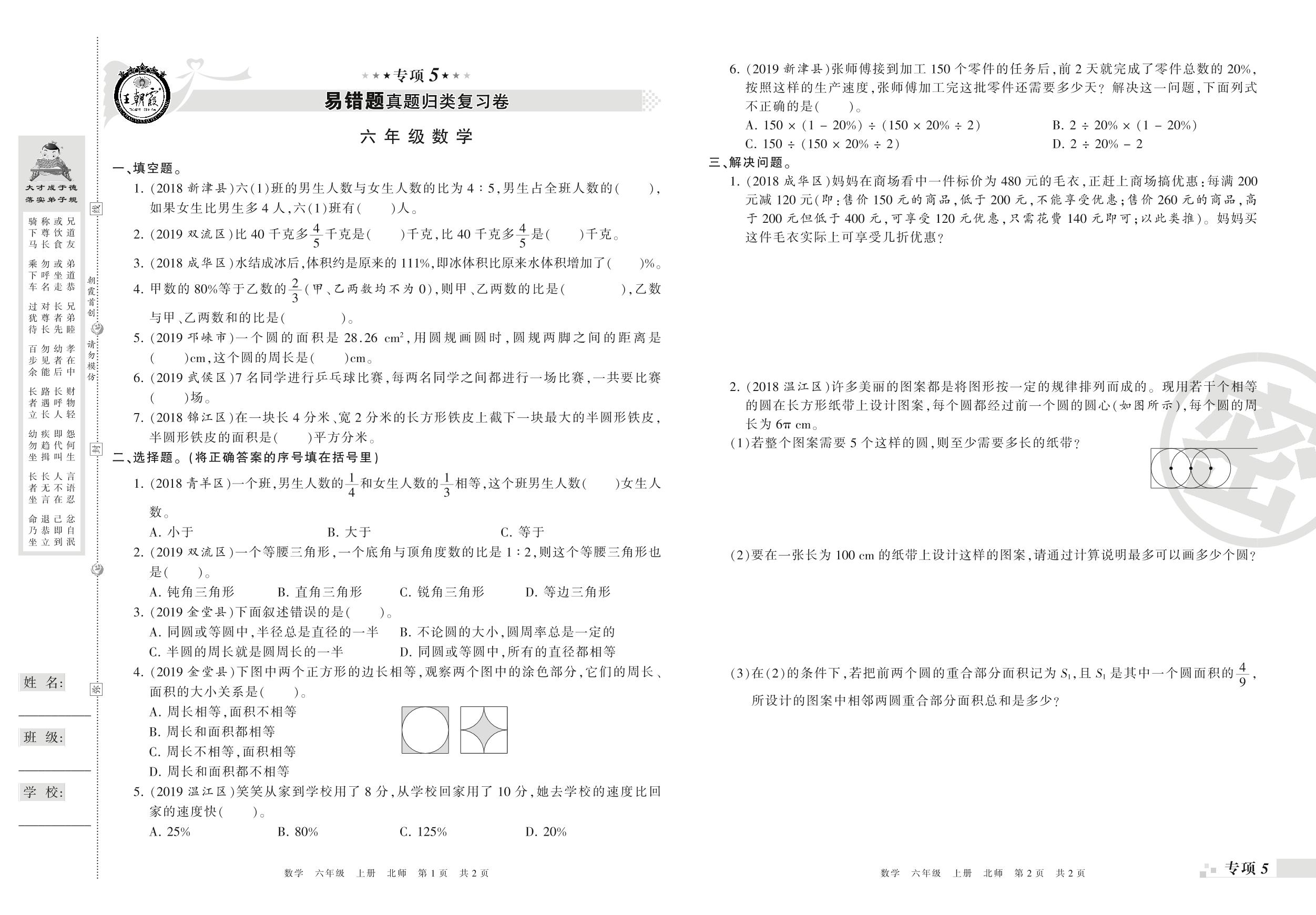 王朝霞期末专项卷——易错题、能力拔高真题归类复习六年级上册数学(北师版)_R210805100007【0】