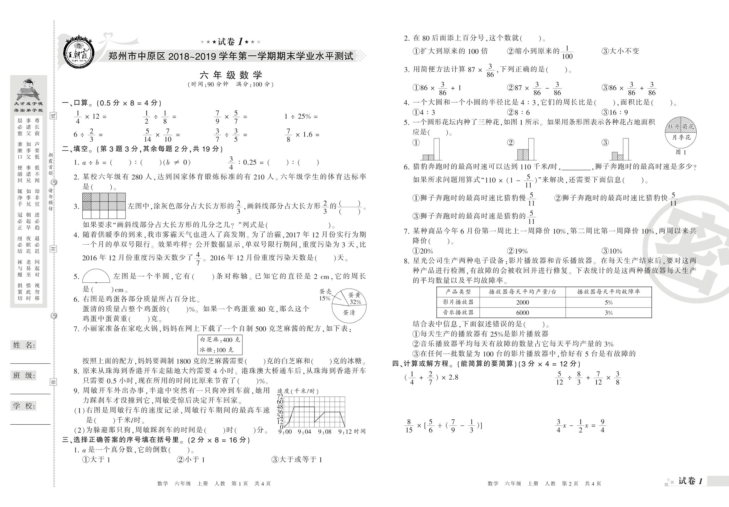 2018-2019学年第一学期郑州市中原区六年级数学试卷(人教版)_R210805100125【1】