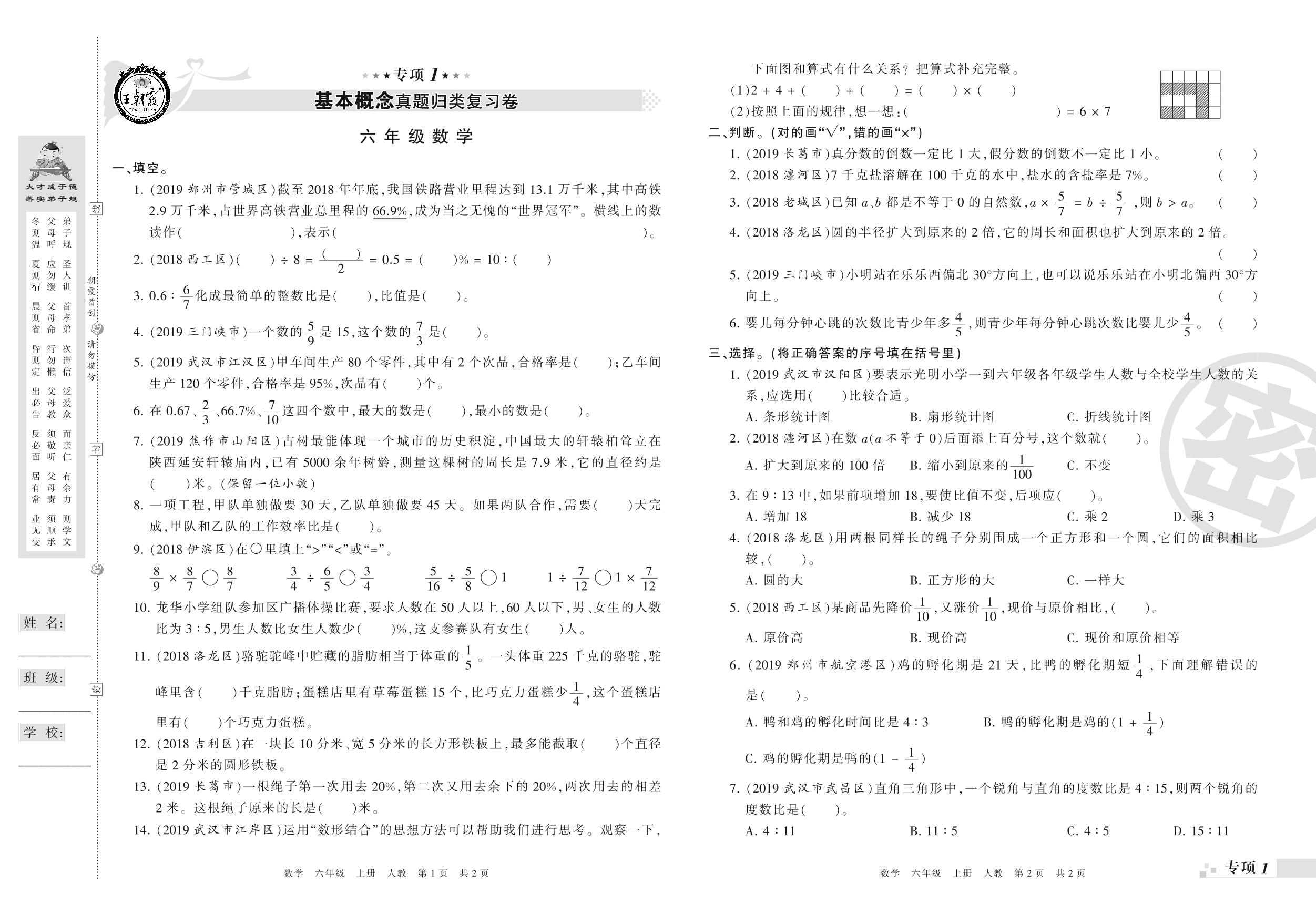 王朝霞期末专项卷——基本概念、计算真题归类复习六年级上册数学(人教版)_R210805100211【0】