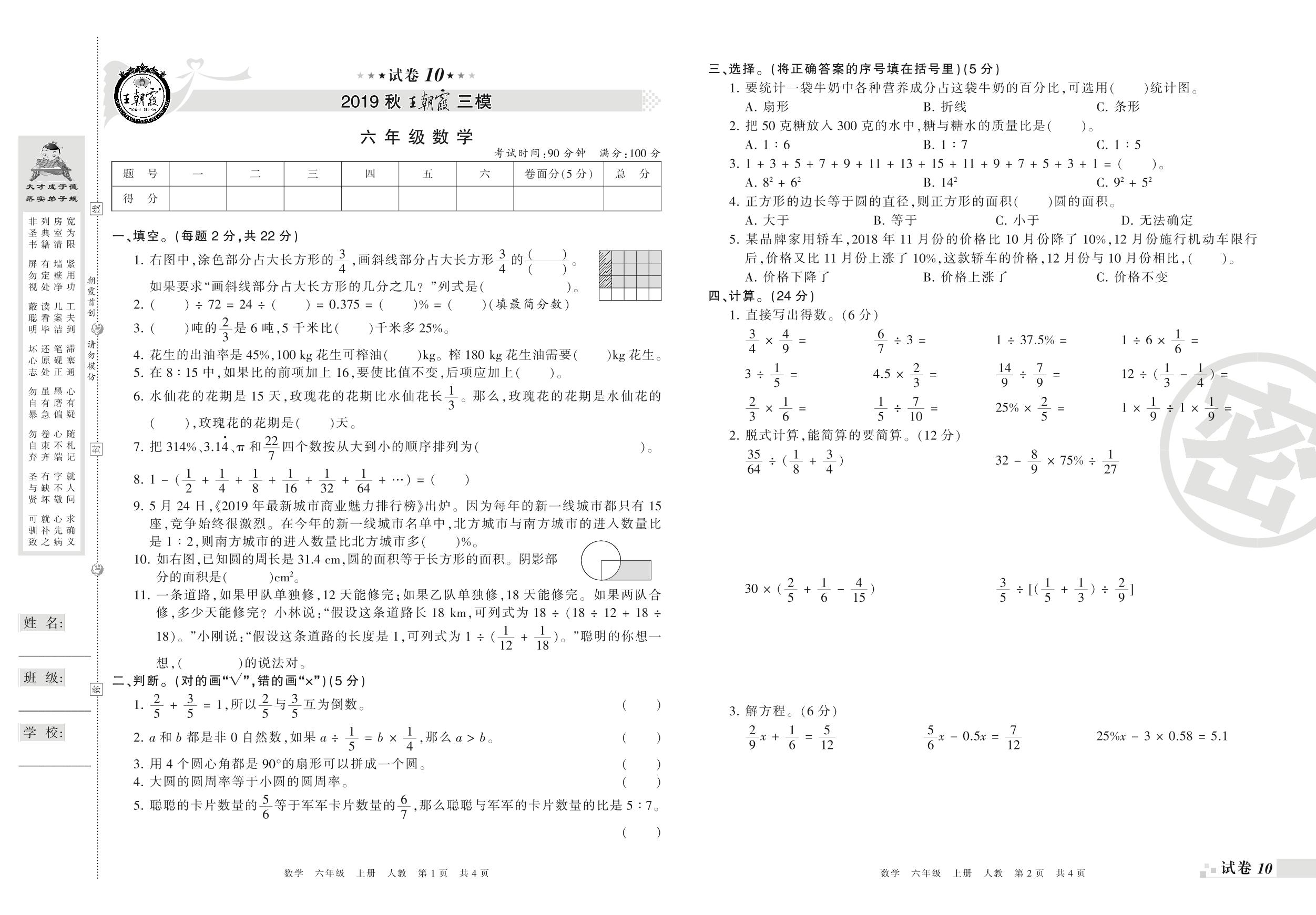 王朝霞期末模拟卷六年级上册数学(人教版)_R210805100242【10】