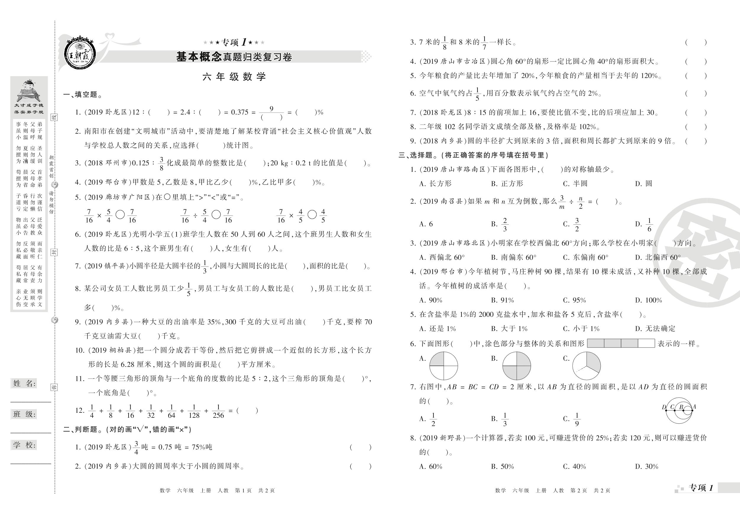 王朝霞期末专项卷——基本概念、计算真题归类复习六年级上册数学(人教版)_R210805100310【0】