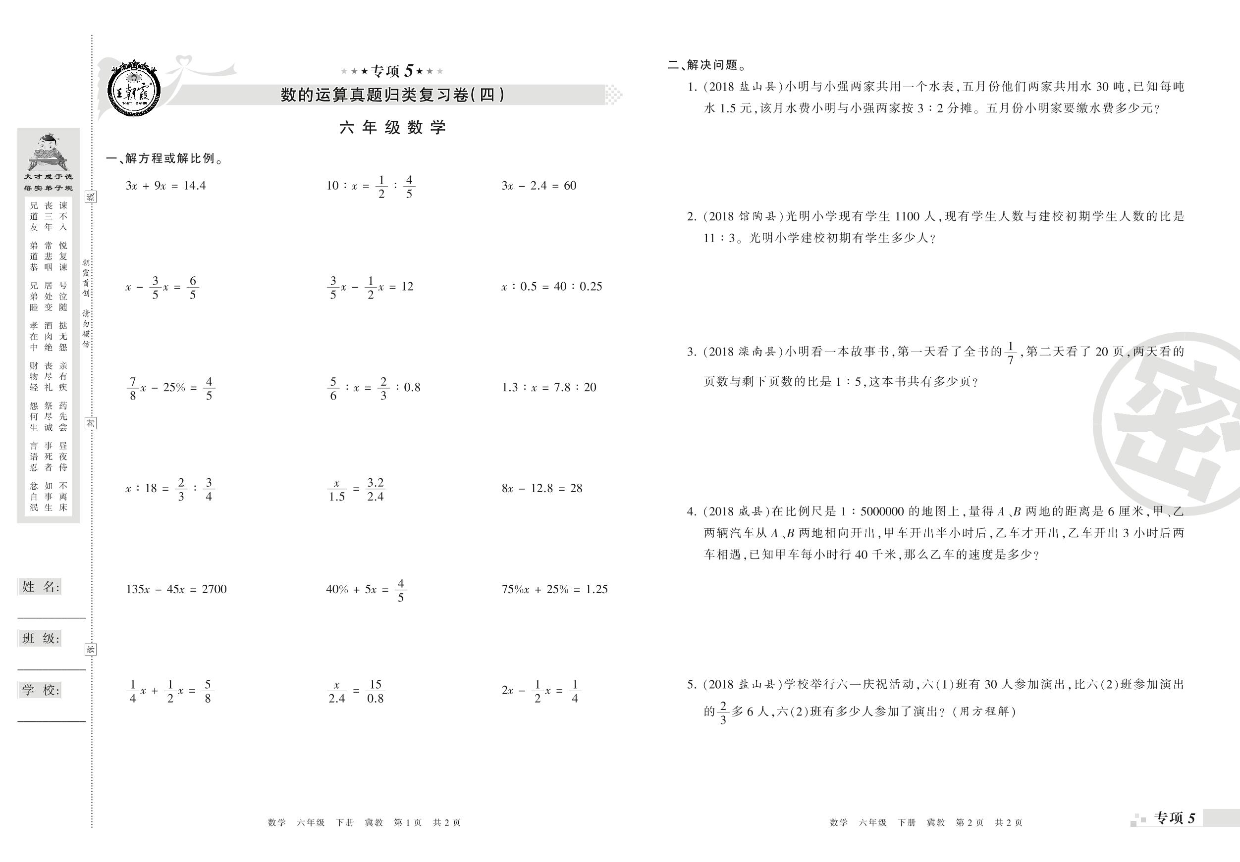 王朝霞期末专项卷——数的运算(四)、图形与几何(一)真题归类复习卷六年级下册数学(冀教版)_R210805100638【0】