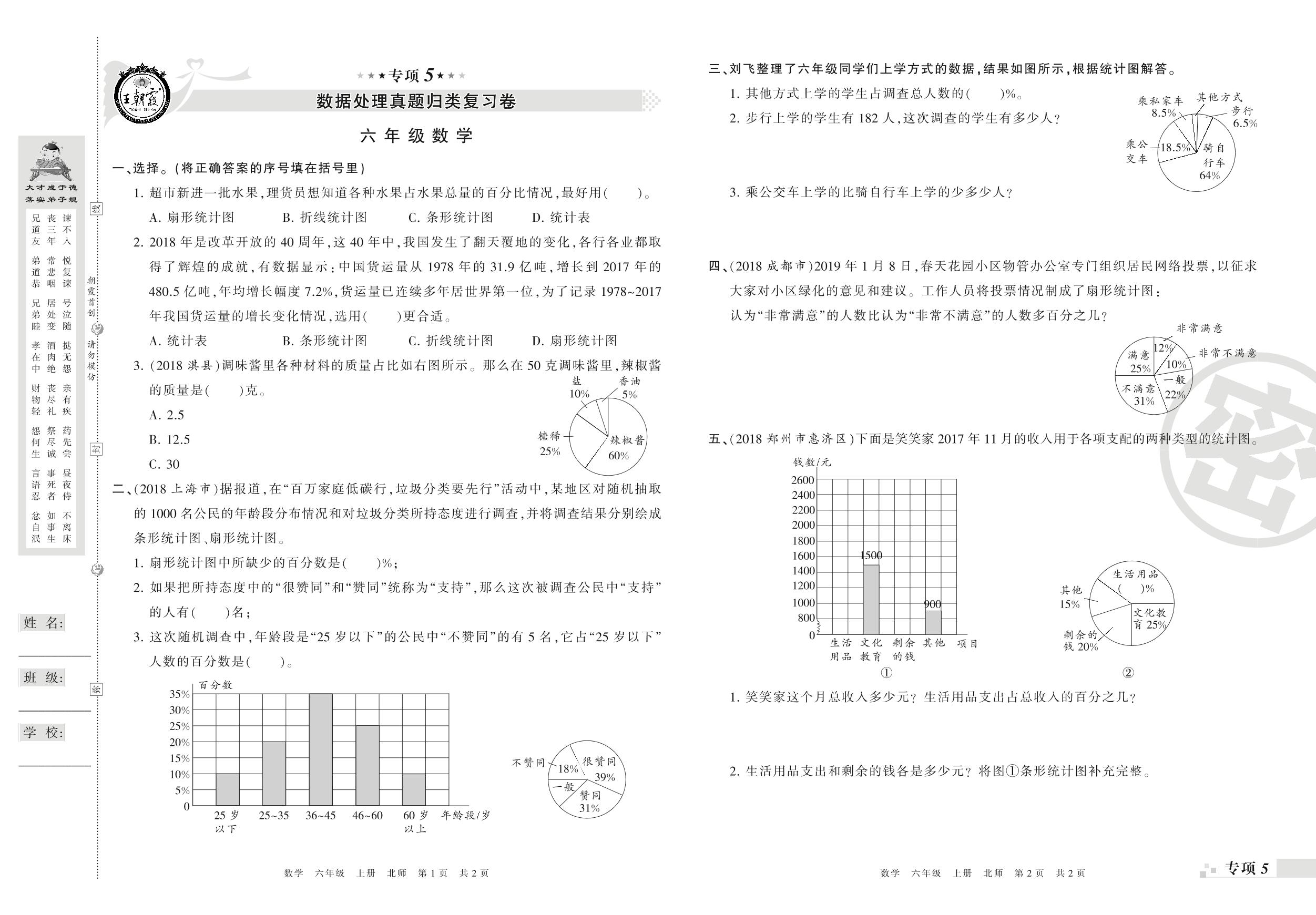 王朝霞期末专项卷——数据处理、比的认识真题归类复习六年级上册数学(北师版)_R210805100858【0】