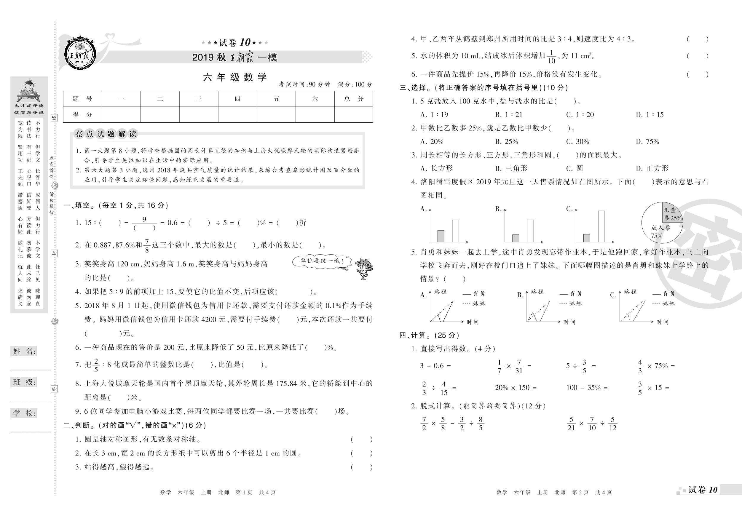 王朝霞期末模拟卷六年级上册数学(北师版)_R210805100928【10】