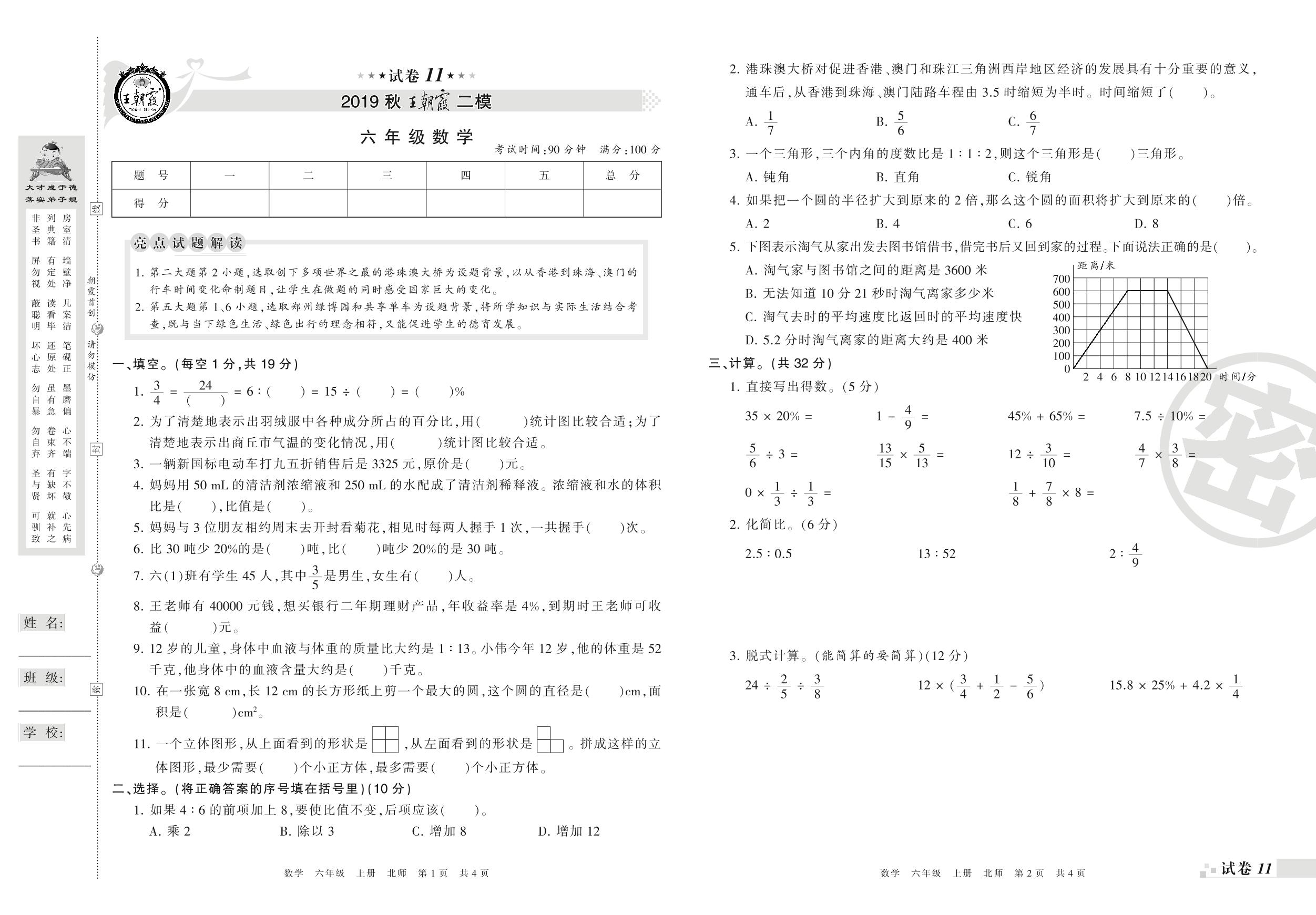 王朝霞期末模拟卷六年级上册数学(北师版)_R210805100930【11】