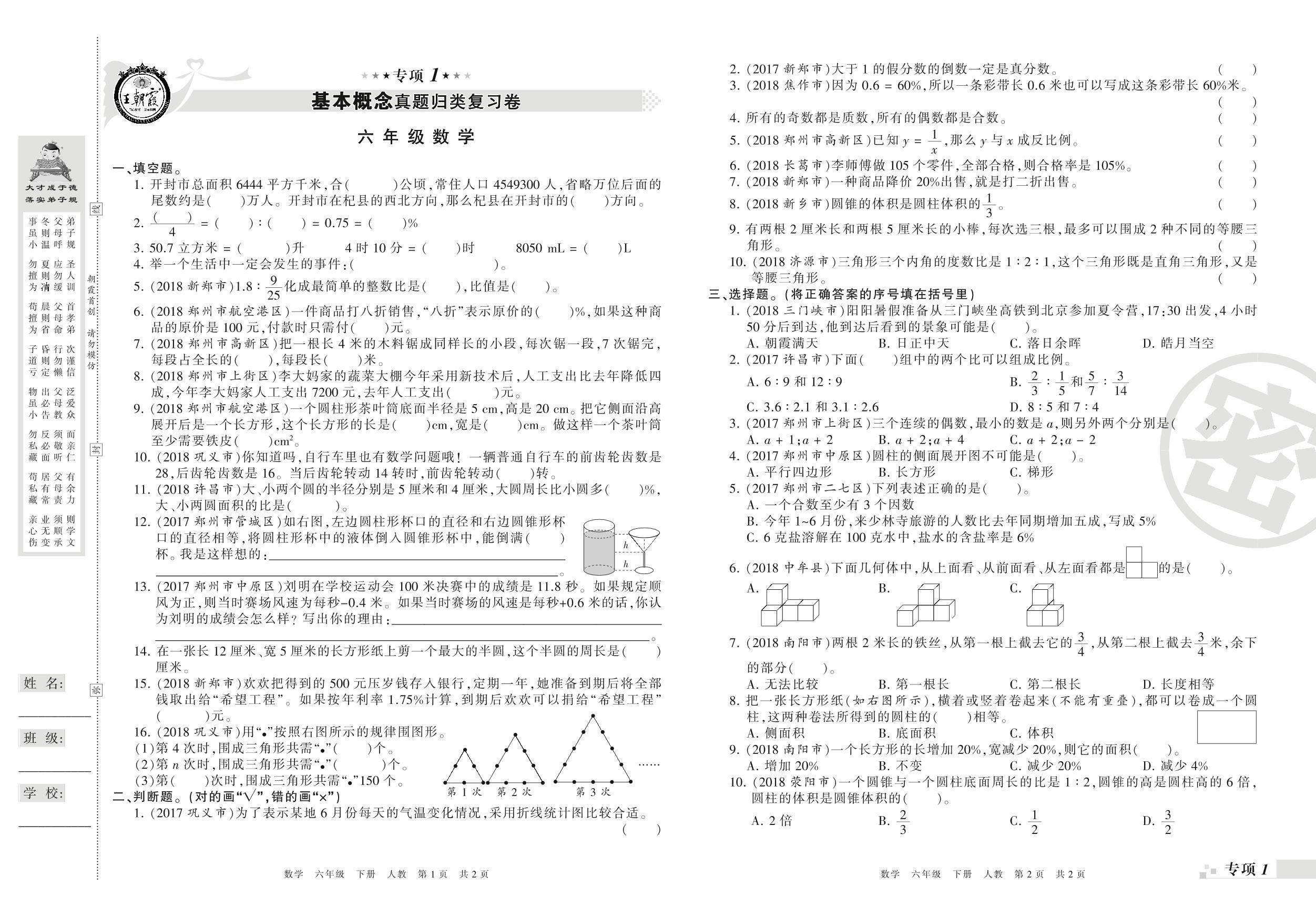 王朝霞期末专项卷——基本概念、计算真题归类复习卷六年级下册数学(人教版)_R210805101038【0】