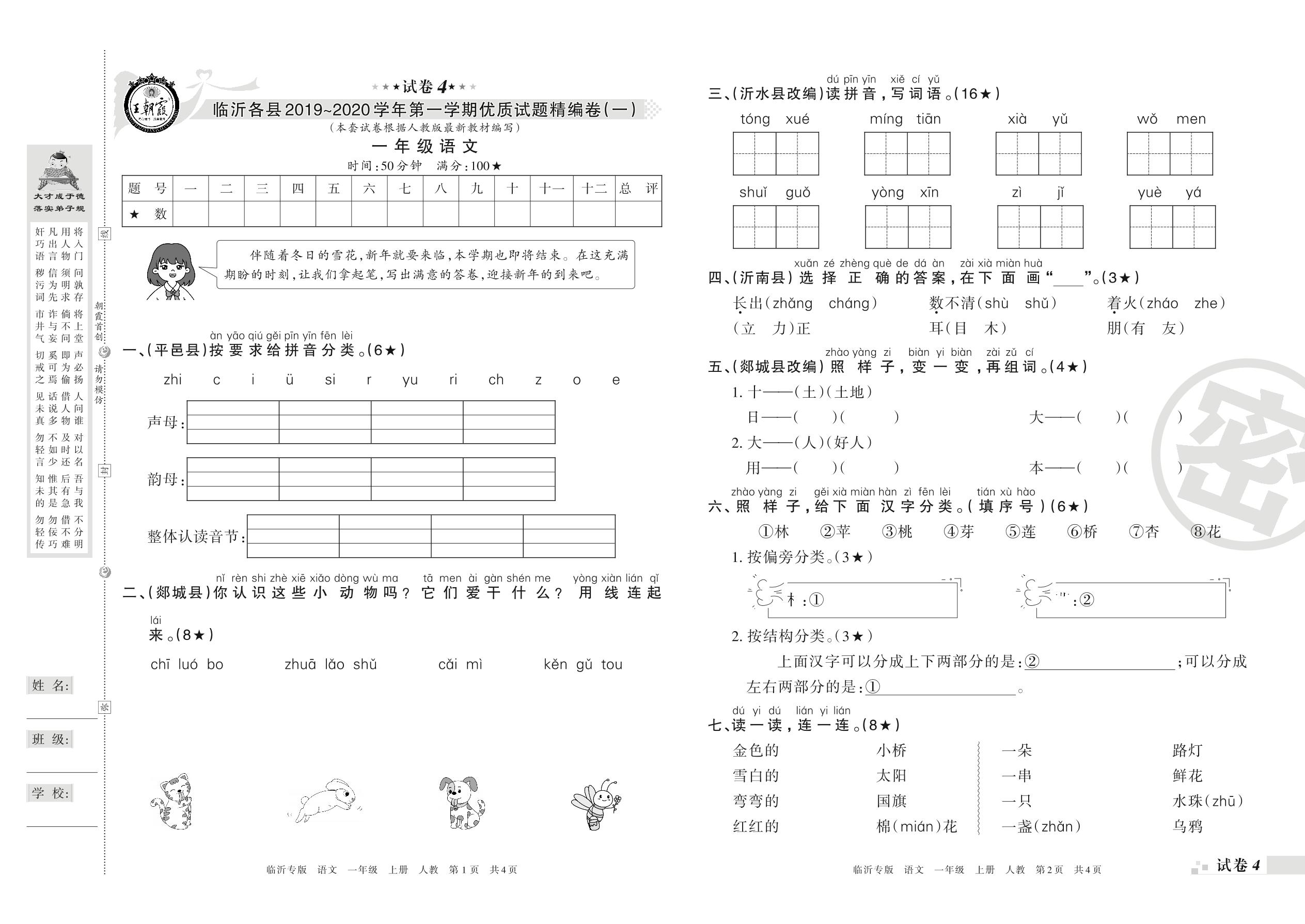 王朝霞海淘期末精编卷一年级上册语文(人教版)_R210731174138【4】