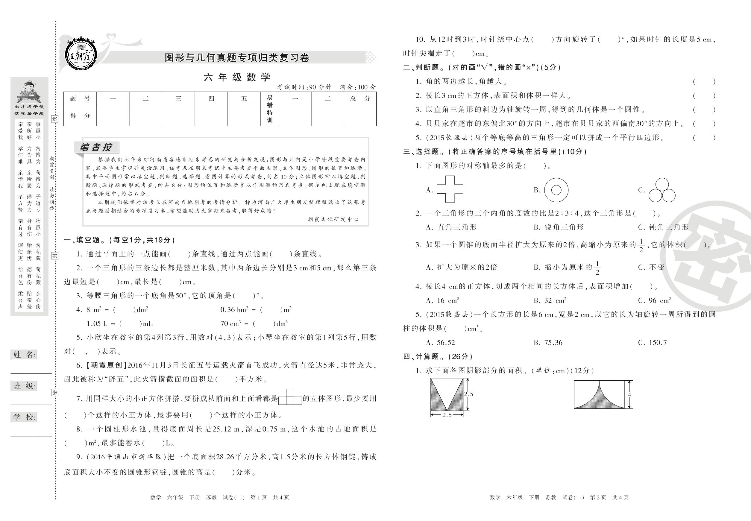 王朝霞期末专项卷六年级下册数学(苏教版)_R210805101124【2】