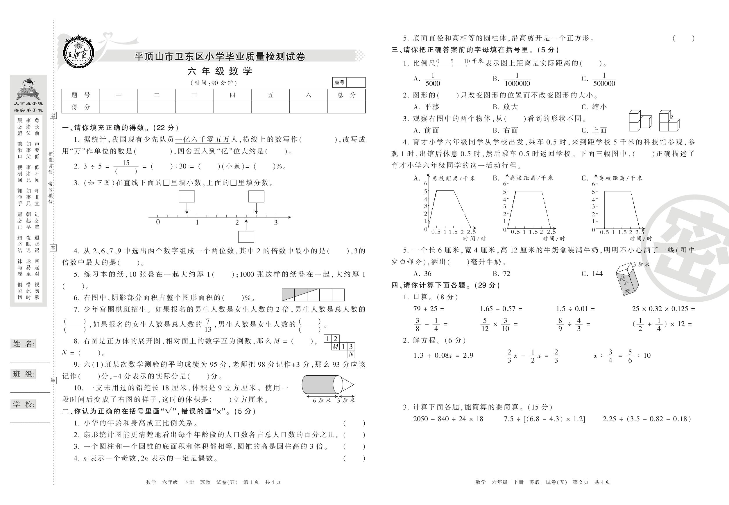 六年级数学苏教版下册期末卷
