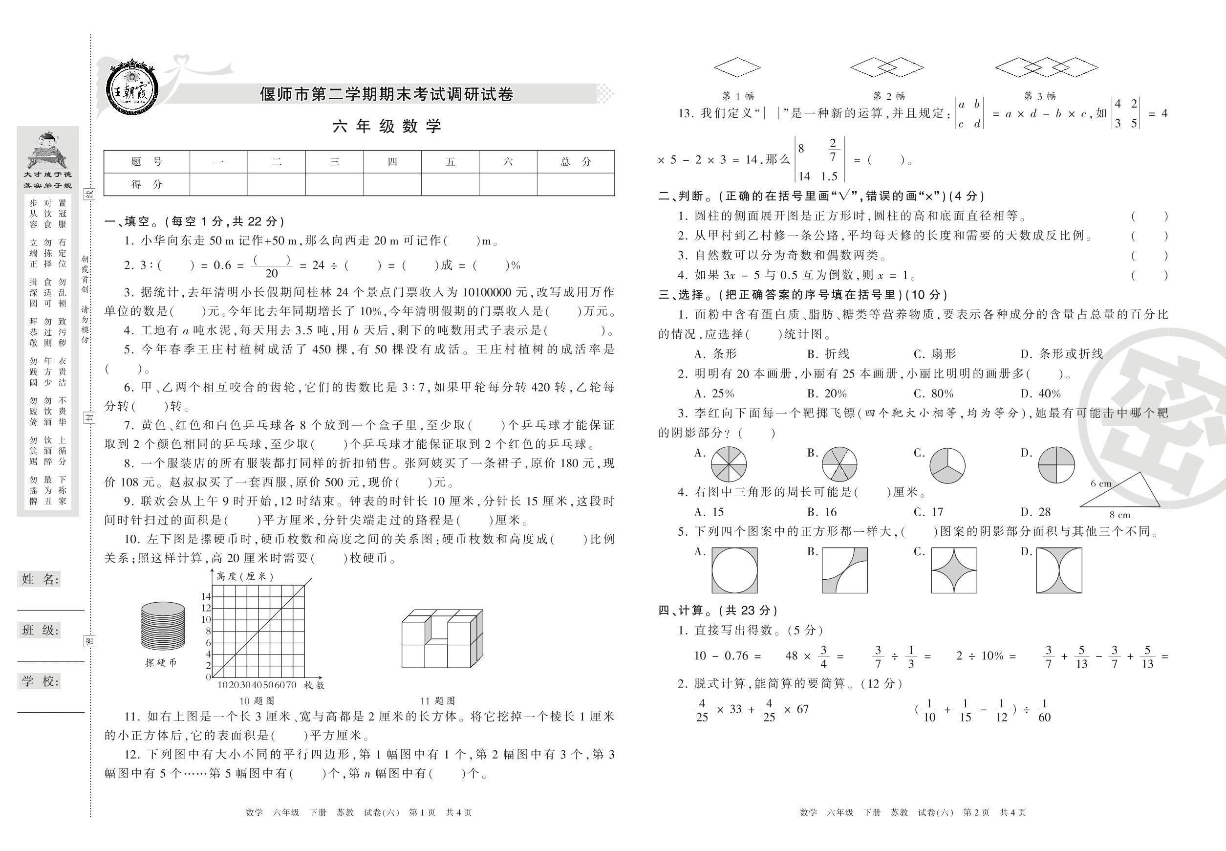 2015-2016学年第二学期偃师市六年级数学试卷(苏教版)【6】