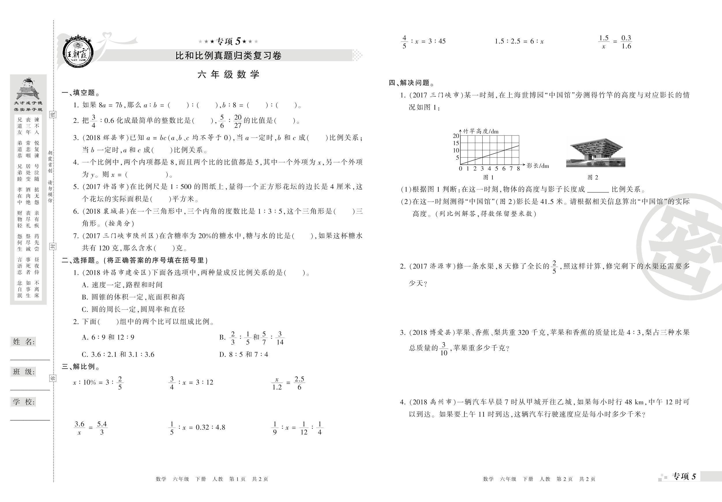 王朝霞期末专项卷——比和比例、图形与几何(一)真题归类复习卷六年级下册数学(人教版)_R210805101719【0】