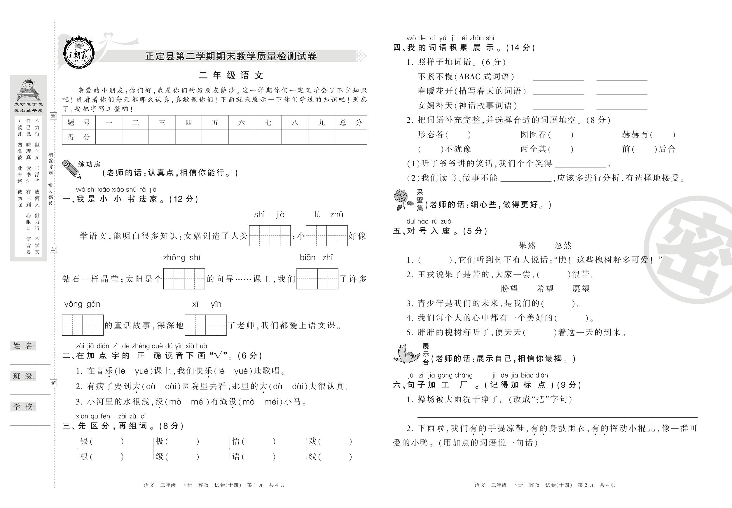 2015-2016学年第二学期石家庄市正定县二年级语文试卷(冀教版)【14】