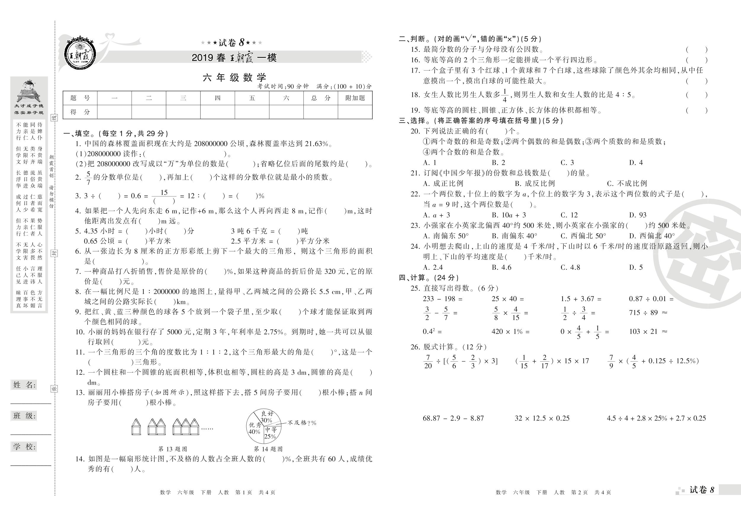 王朝霞期末模拟卷六年级下册数学(人教版)_R210805101920【8】
