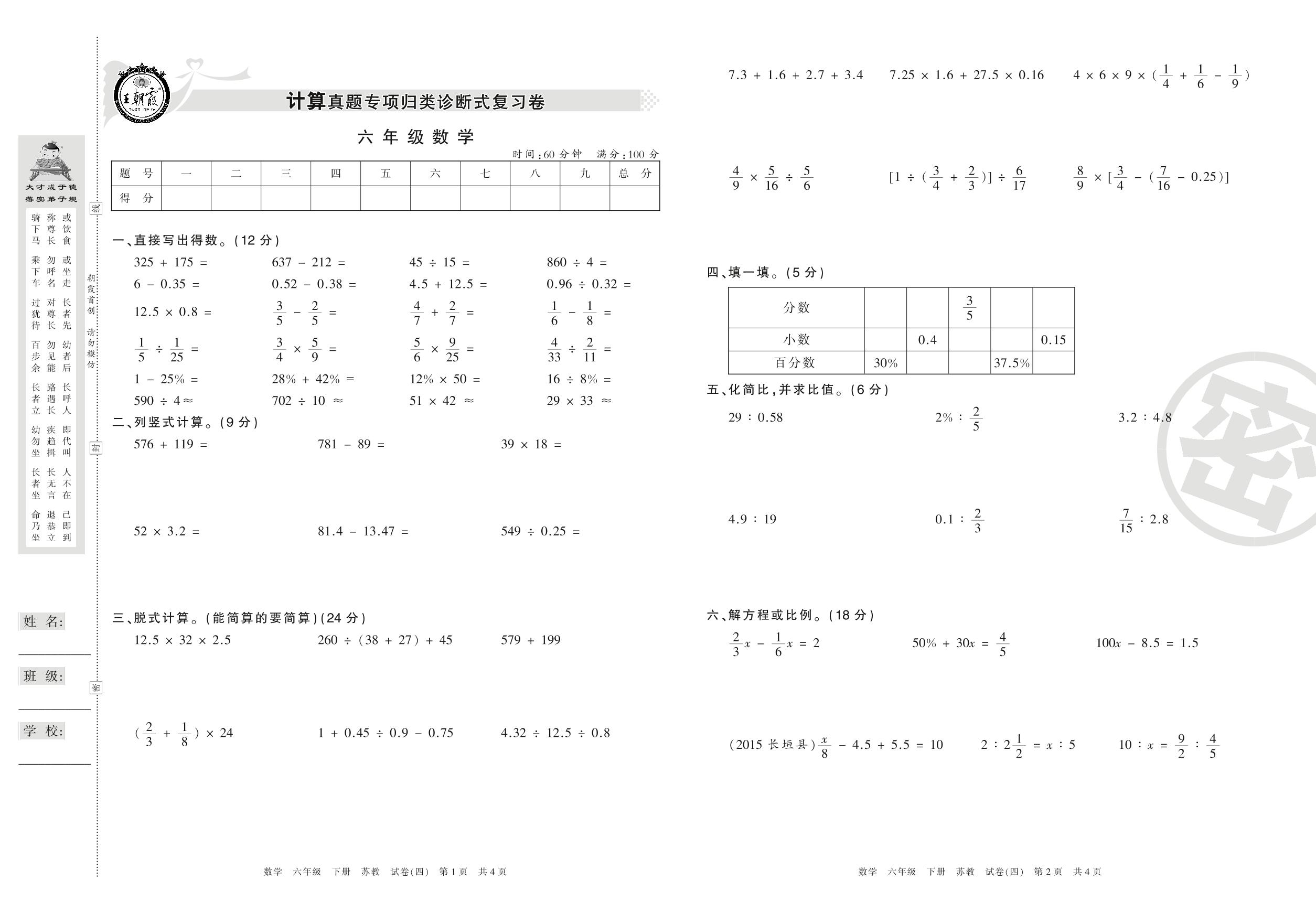 王朝霞期末专项卷六年级下册数学(苏教版)_R210805101942【4】