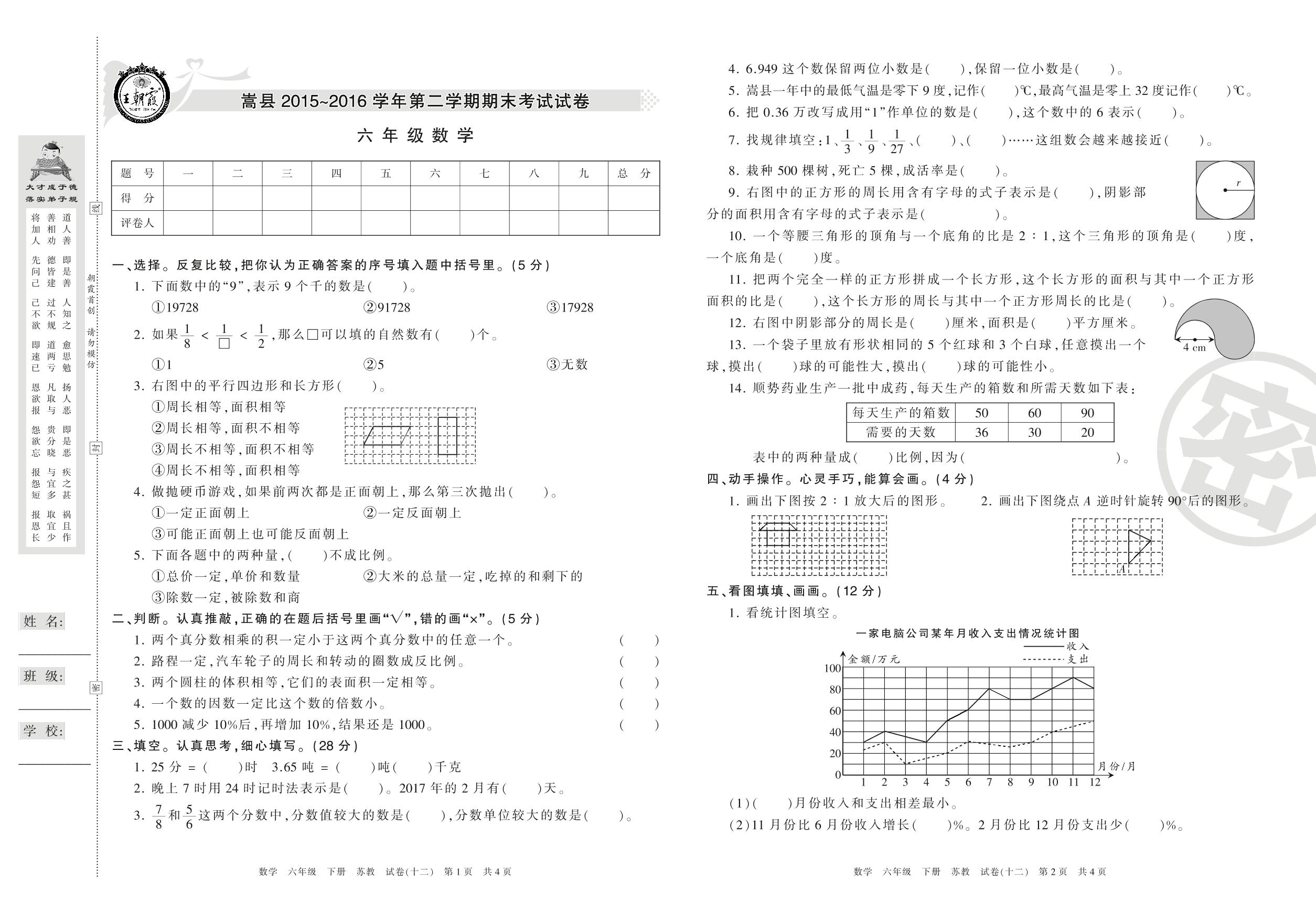 2015-2016学年第二学期洛阳市嵩县六年级数学试卷(苏教版)【12】