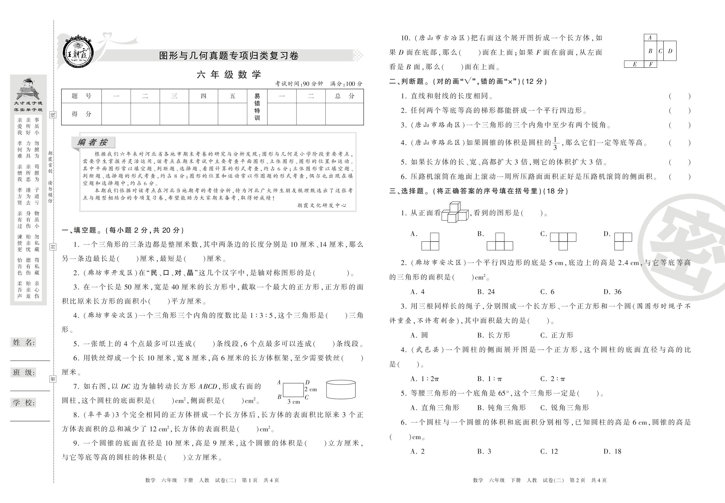 王朝霞期末专项卷六年级下册数学(人教版)_R210805102052【2】