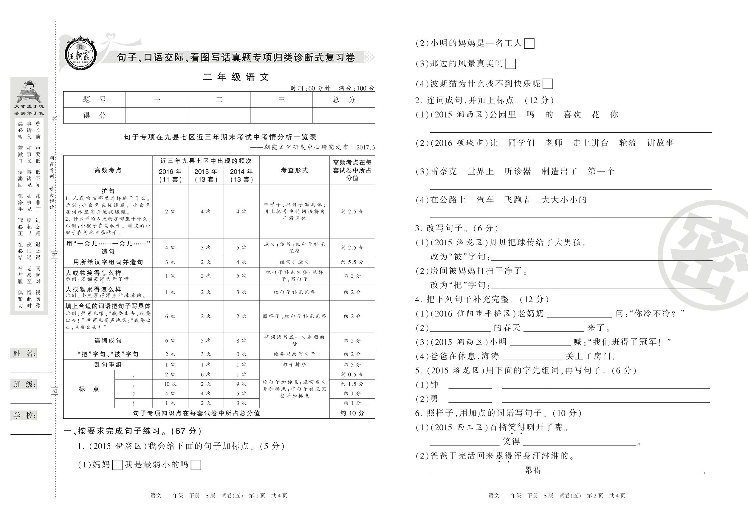 王朝霞期末专项卷二年级下册语文(S版)_R21080172707【5】