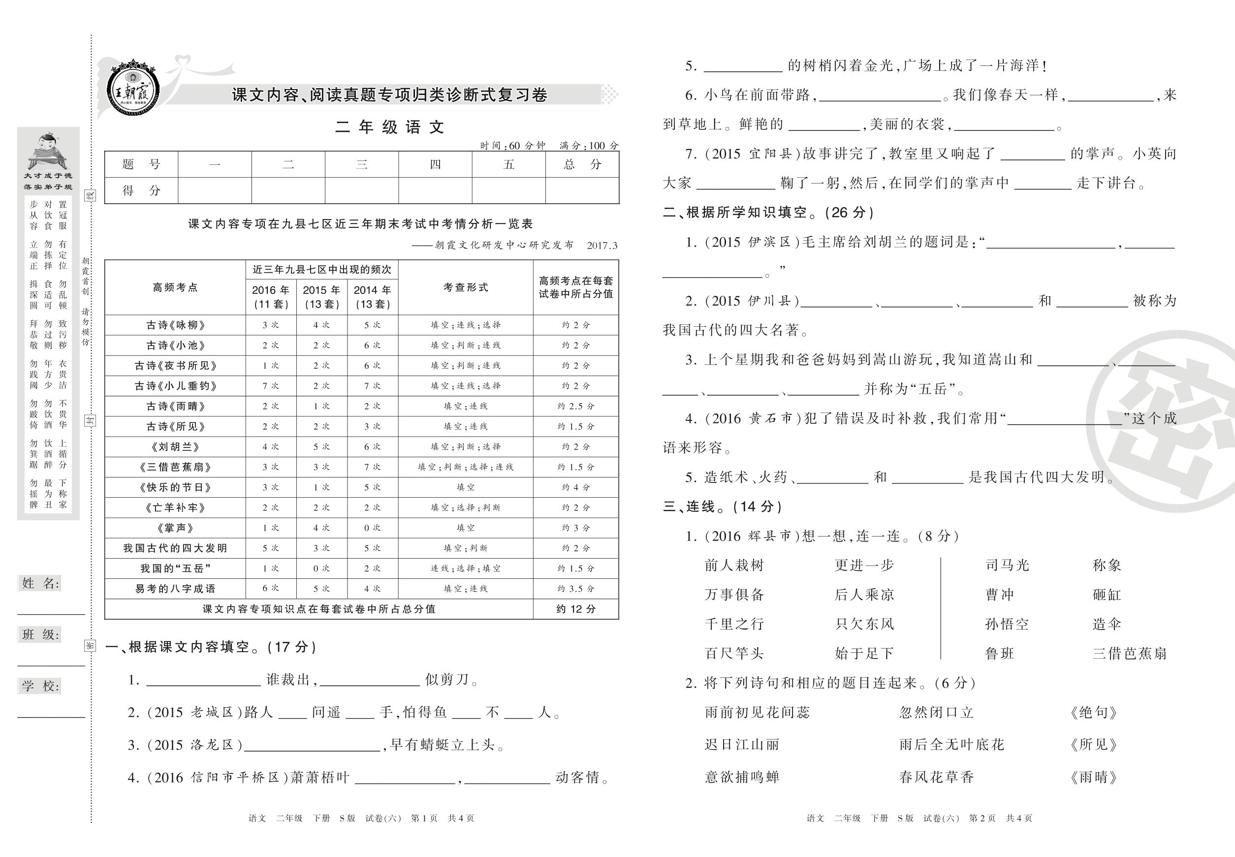 王朝霞期末专项卷二年级下册语文(S版)_R21080172709【6】