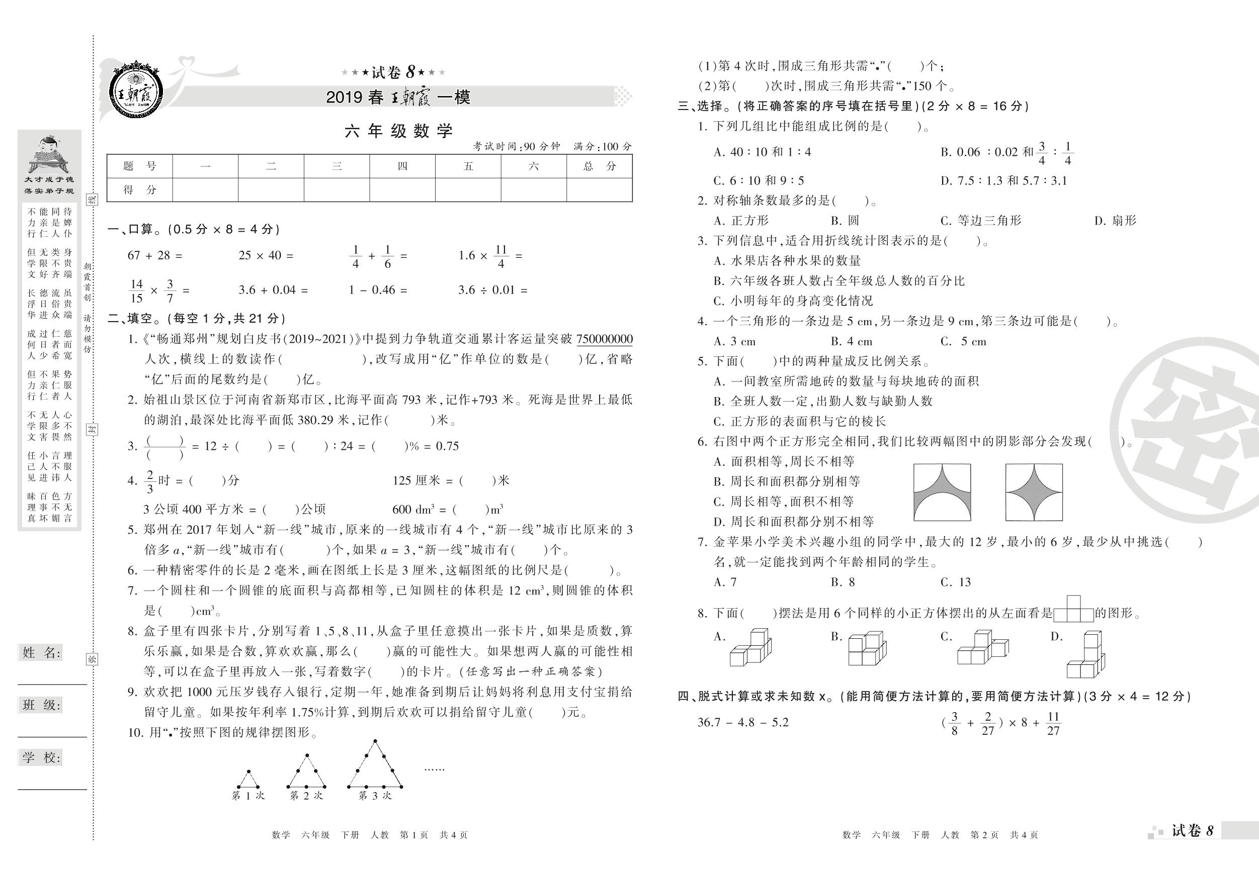 王朝霞期末模拟卷六年级下册数学(人教版)_R210805102207【8】