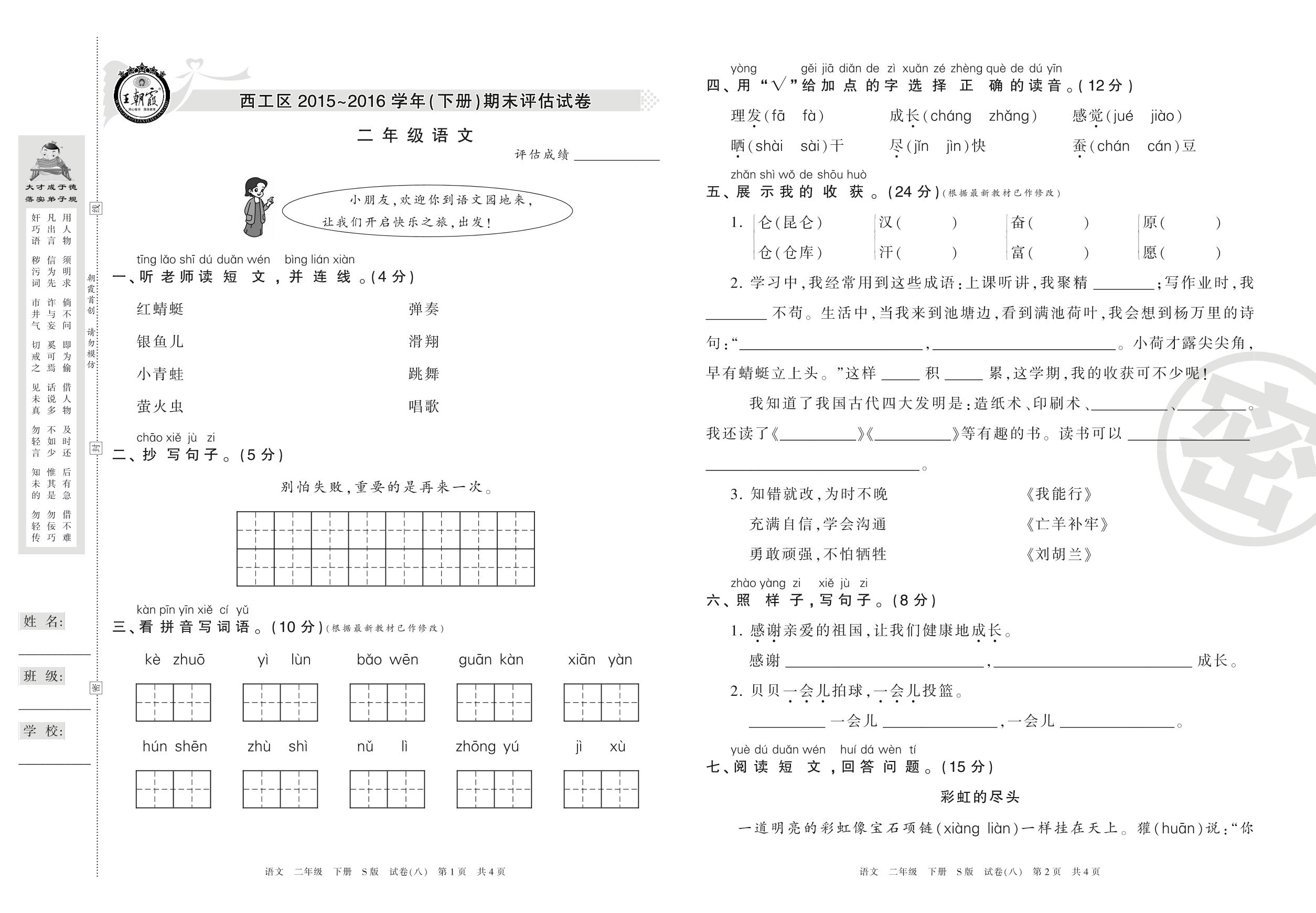 2015-2016学年第二学期洛阳市西工区二年级语文试卷(S版)【8】