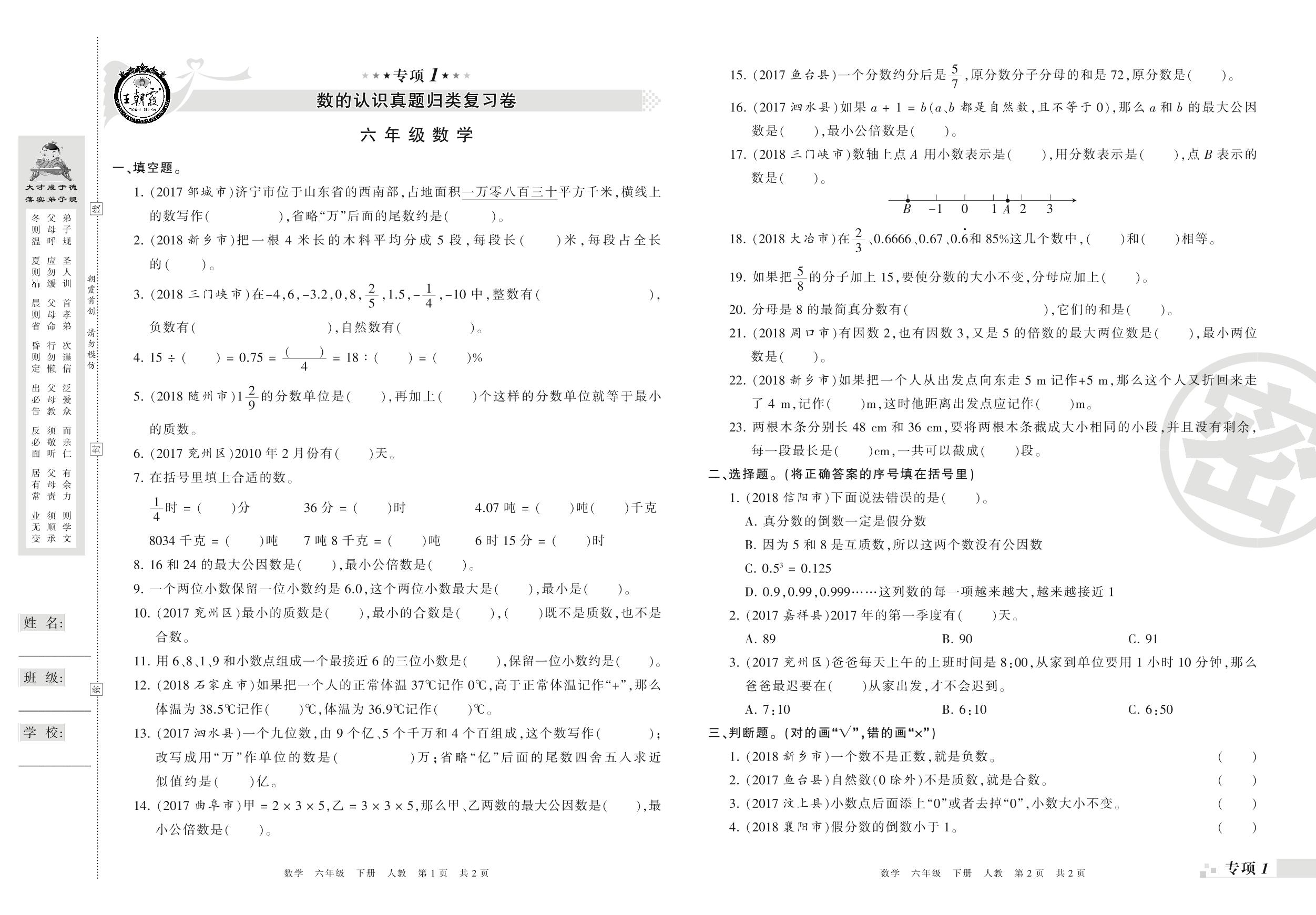 王朝霞期末专项卷——数的认识、数的运算(一)真题归类复习卷六年级下册数学(人教版)_R210805102348【0】