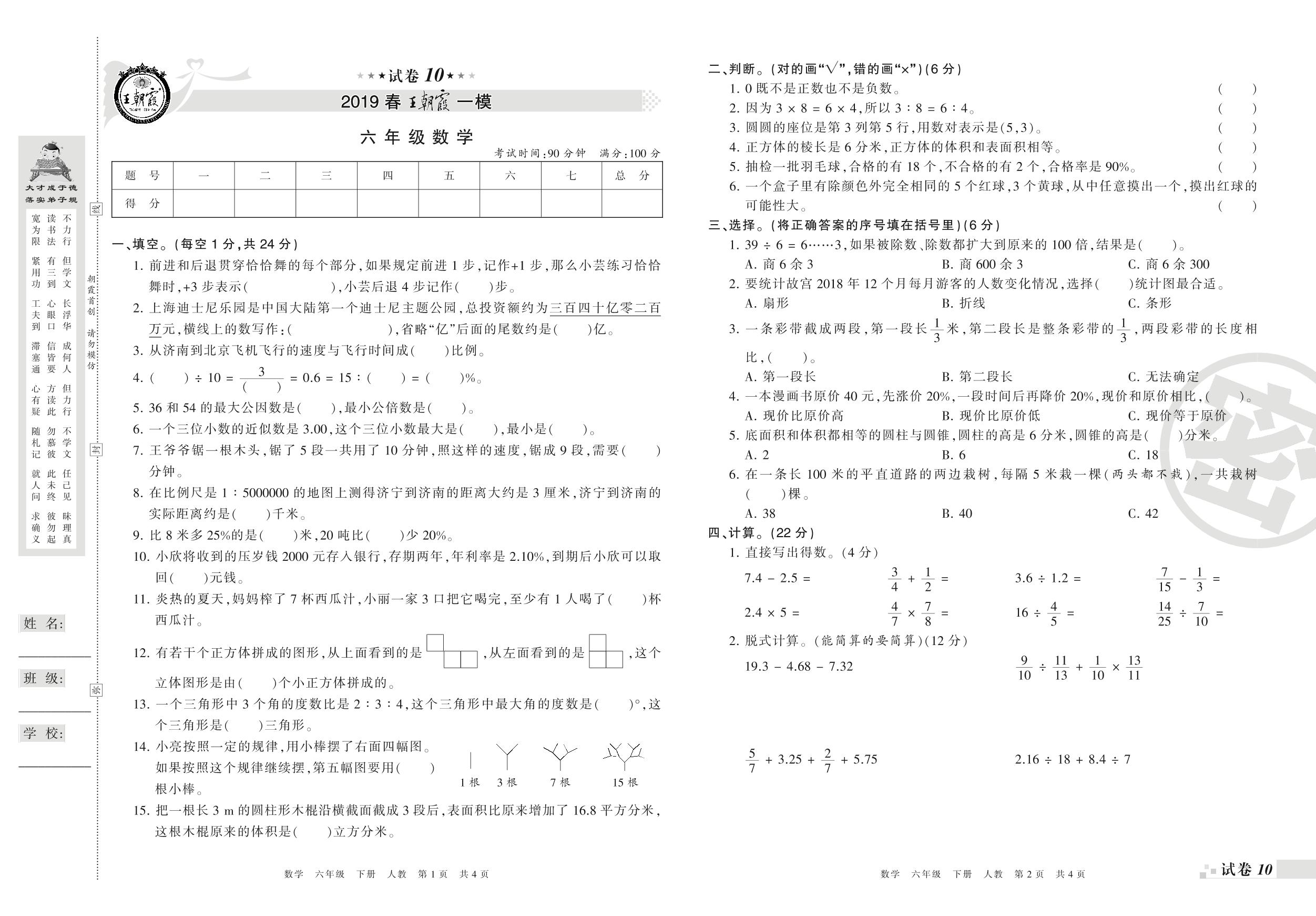王朝霞期末模拟卷六年级下册数学(人教版)_R210805102355【10】