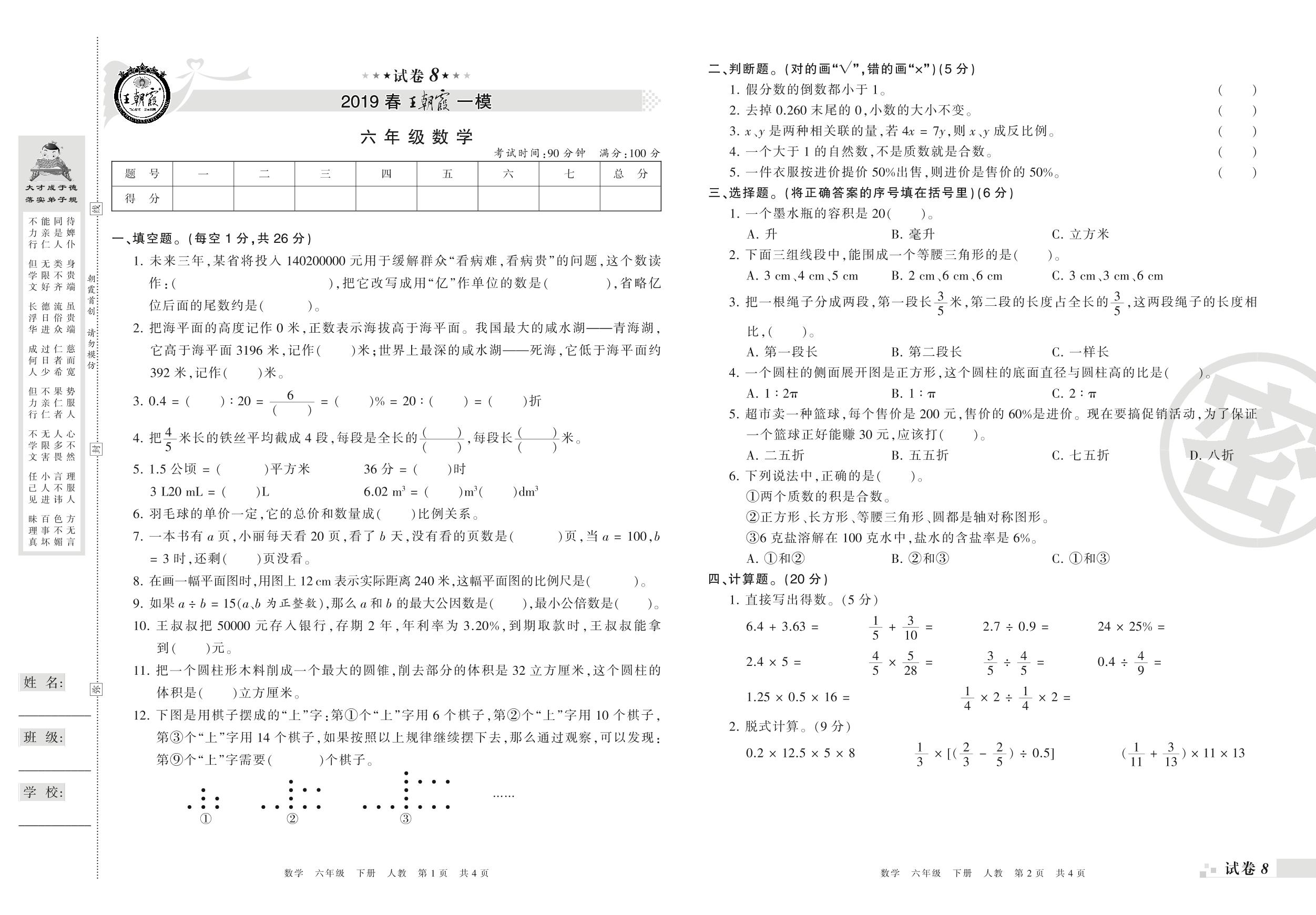 王朝霞期末模拟卷六年级下册数学(人教版)_R210805102439【8】