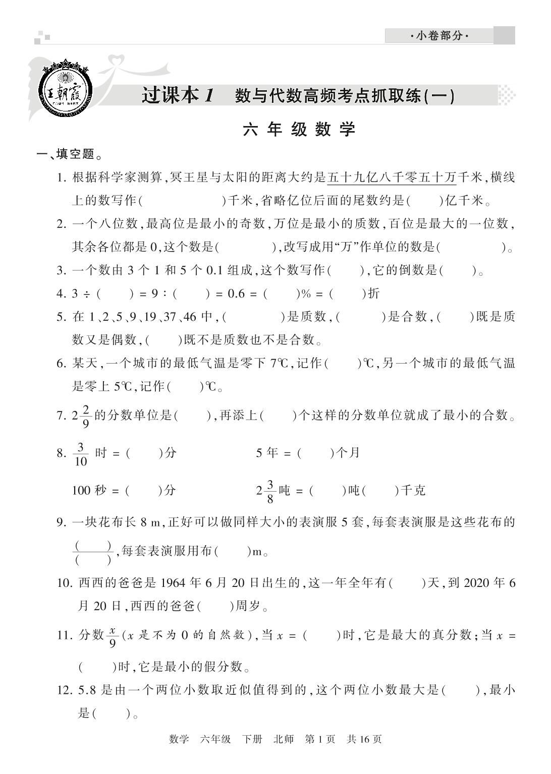 王朝霞期末过课本六年级下册数学(北师版)_R210805102449【0】