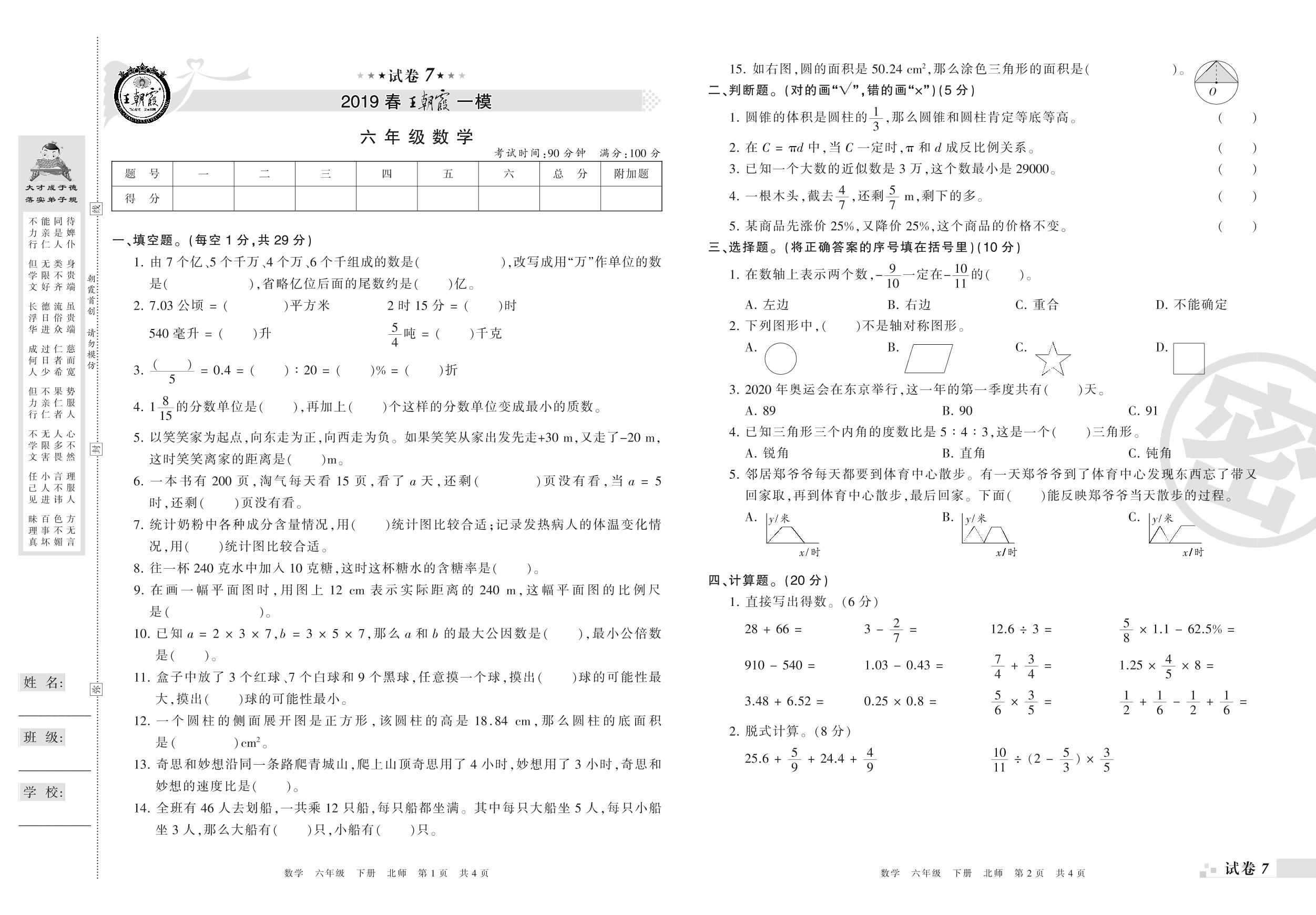 王朝霞期末模拟卷六年级下册数学(北师版)_R210805102533【7】
