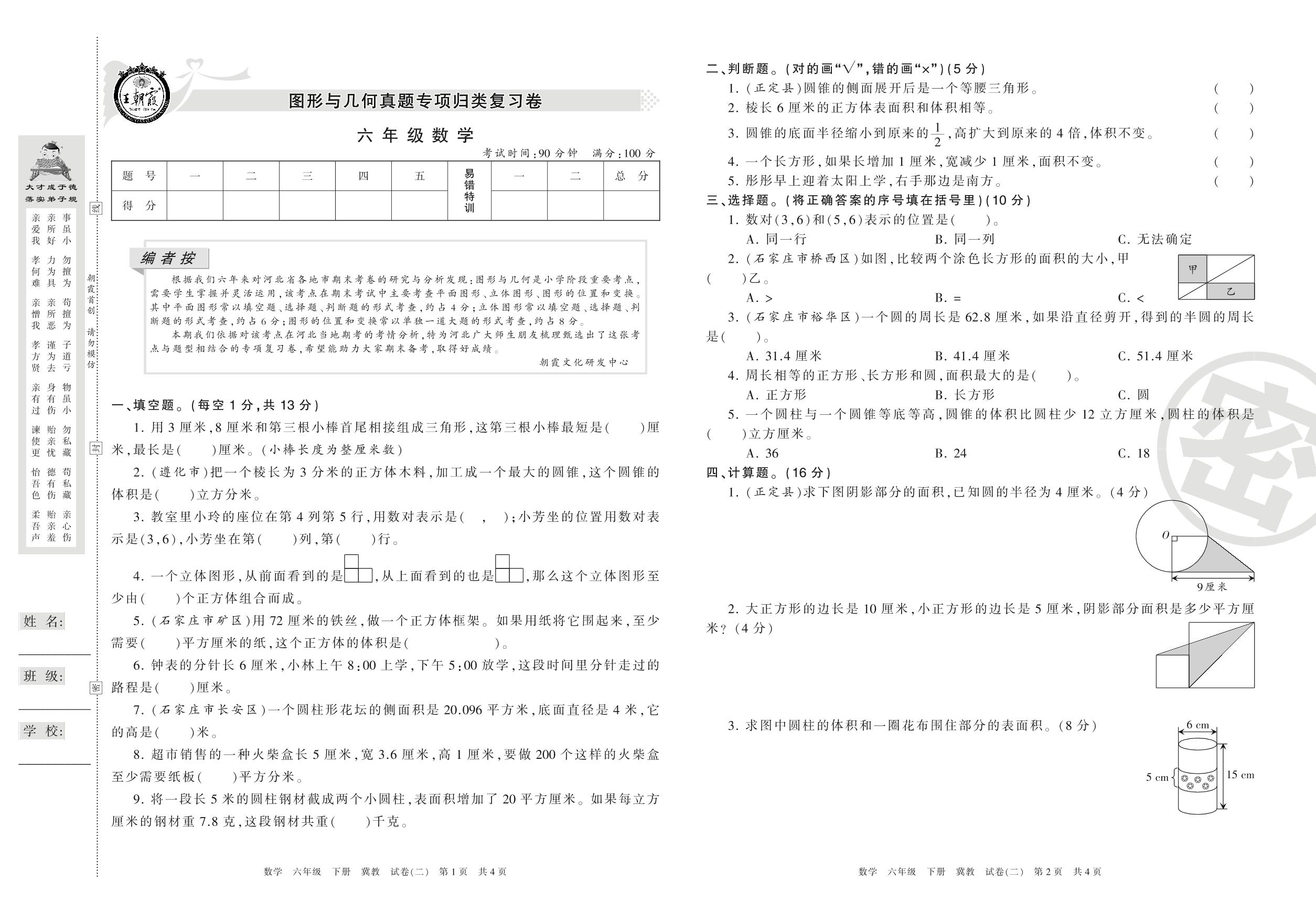 王朝霞期末专项卷六年级下册数学(冀教版)_R210805102544【2】
