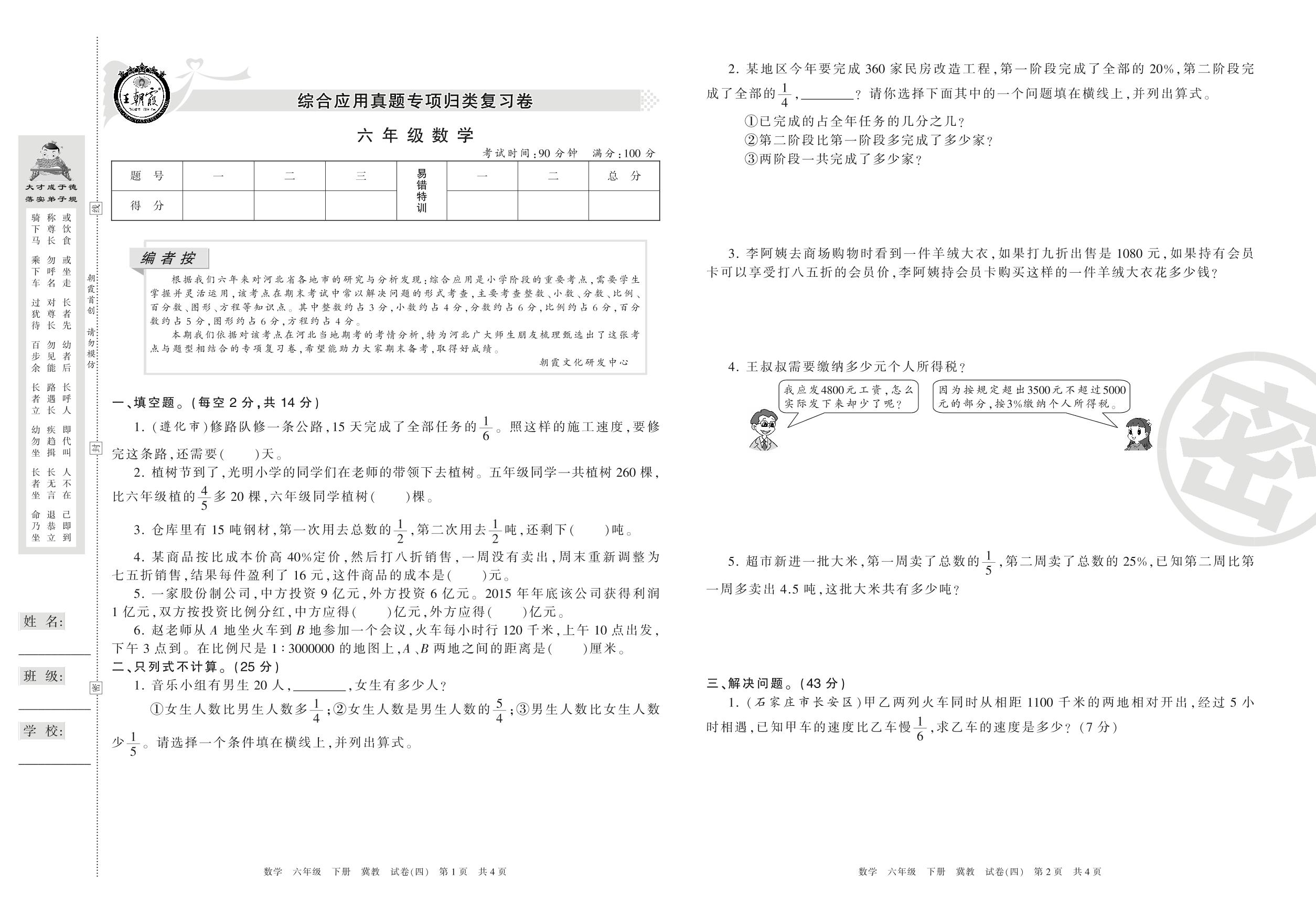 王朝霞期末专项卷六年级下册数学(冀教版)_R210805102549【4】