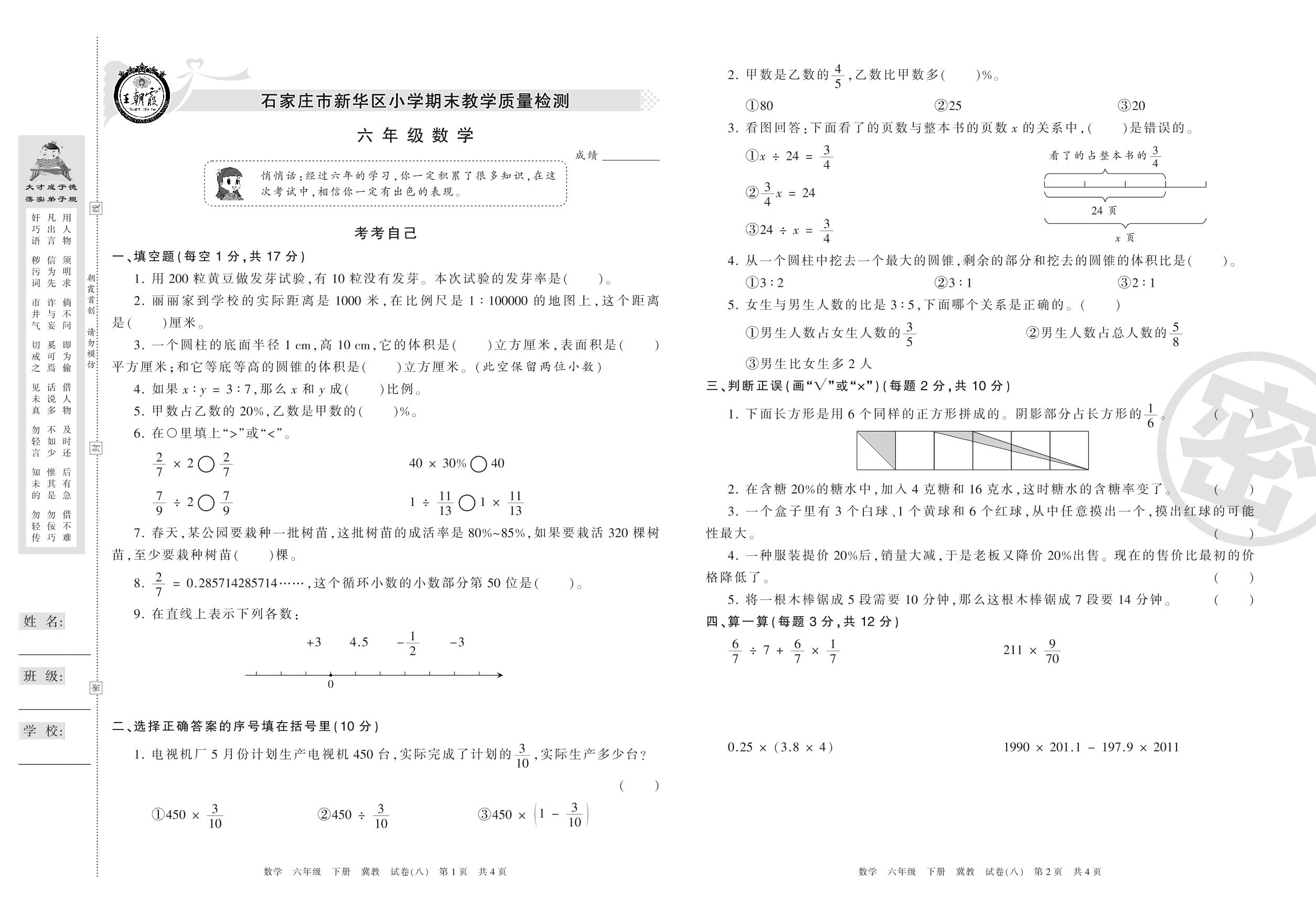 2015-2016学年第二学期石家庄市新华区六年级数学试卷(冀教版)【8】