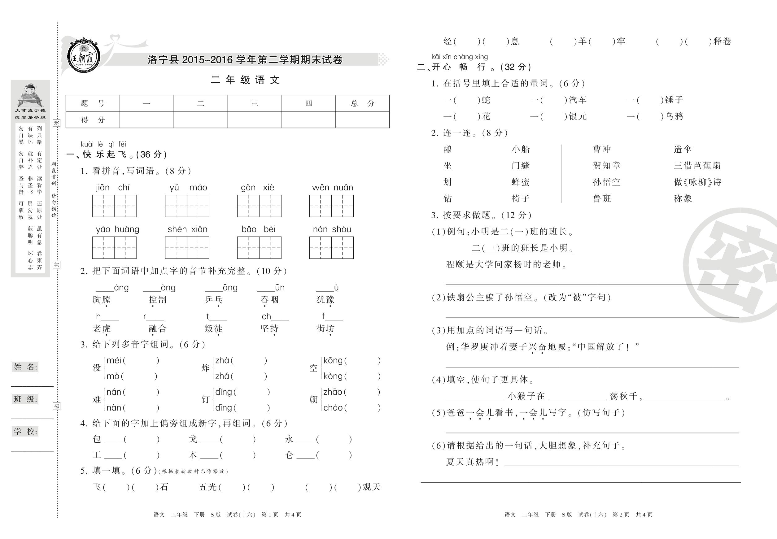 2015-2016学年第二学期洛阳市洛宁县二年级语文试卷(S版)【16】