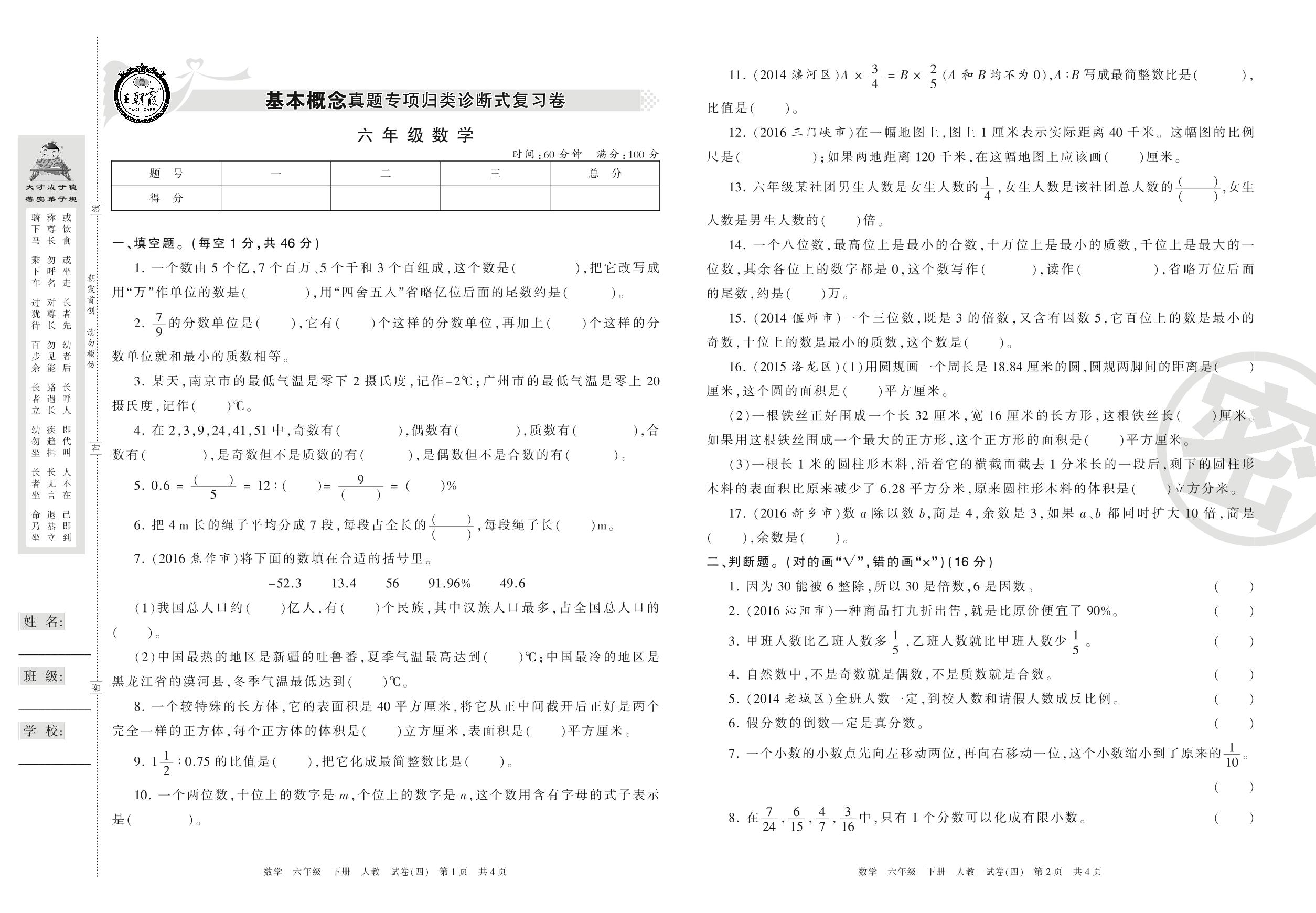 王朝霞期末专项卷六年级下册数学(人教版)_R210805102716【4】