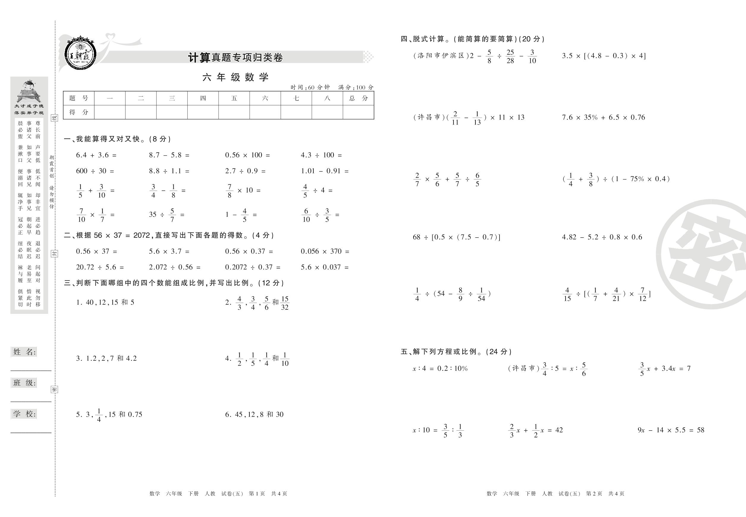 王朝霞期末专项卷六年级下册数学(人教版)_R210805102842【5】