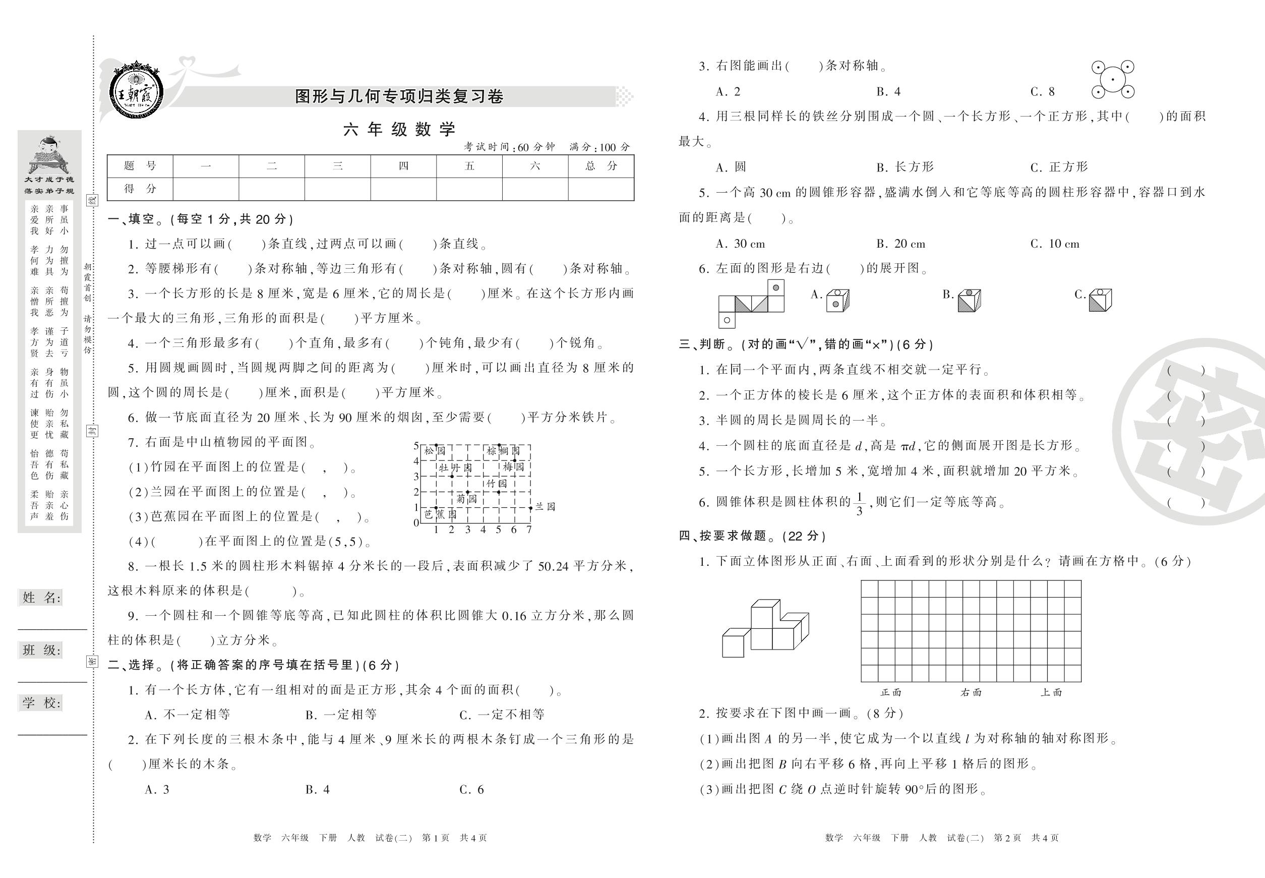 王朝霞期末专项卷六年级下册数学(人教版)_R210805103116【2】