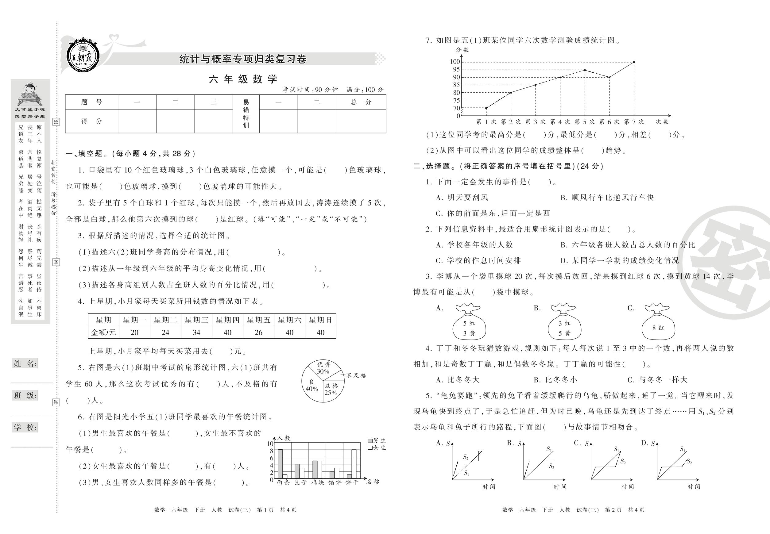 王朝霞期末专项卷——统计与概率专项归类卷六年级下册数学(人教版)【3】