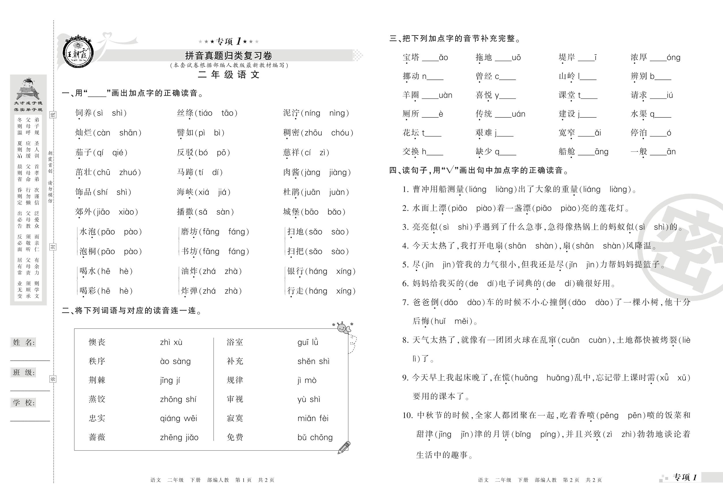 王朝霞期末专项卷——拼音、汉字真题归类复习二年级下册语文(人教版)_R21080172818【0】