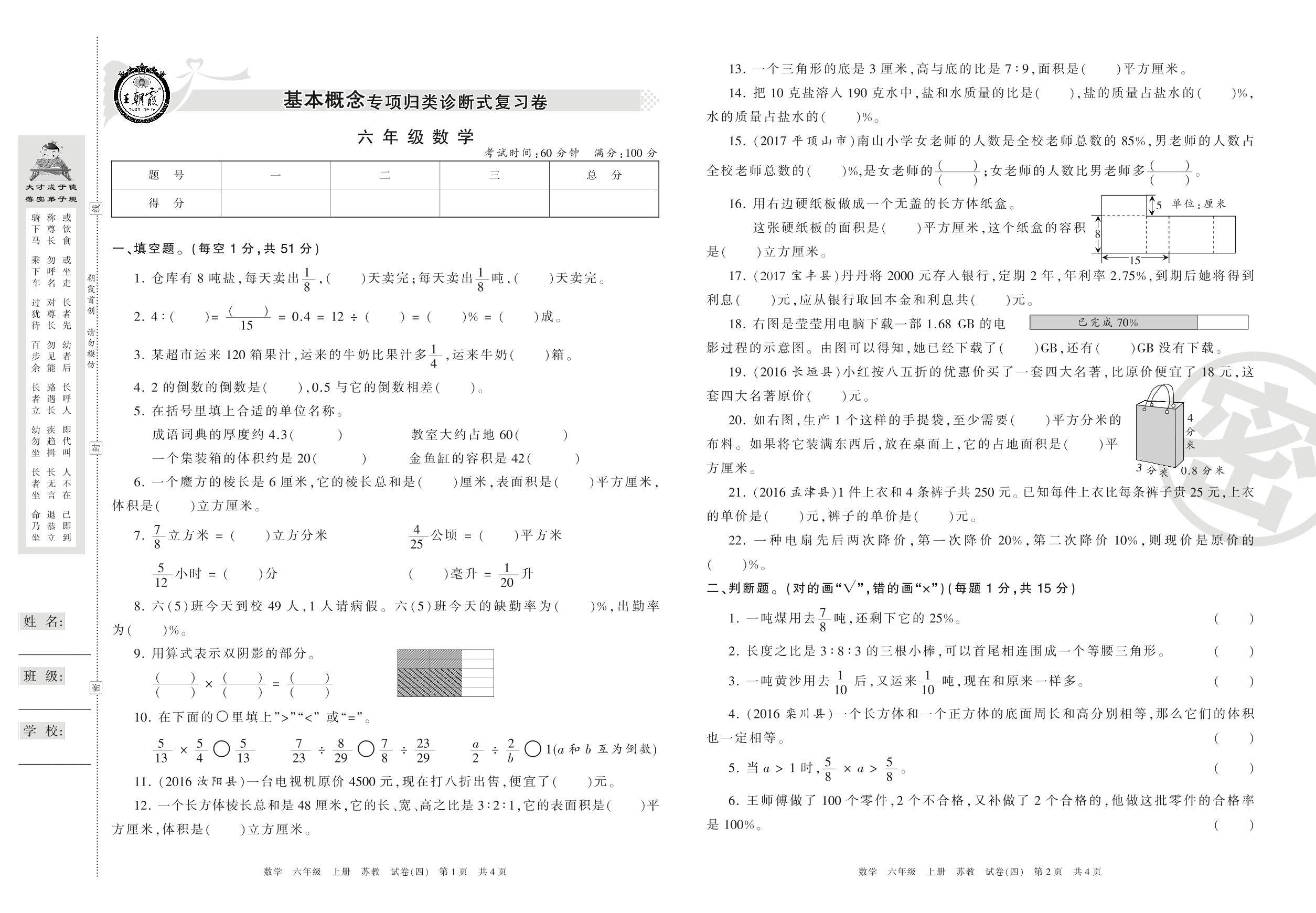 王朝霞期末专项卷六年级上册数学(苏教版)_R210805104021【4】