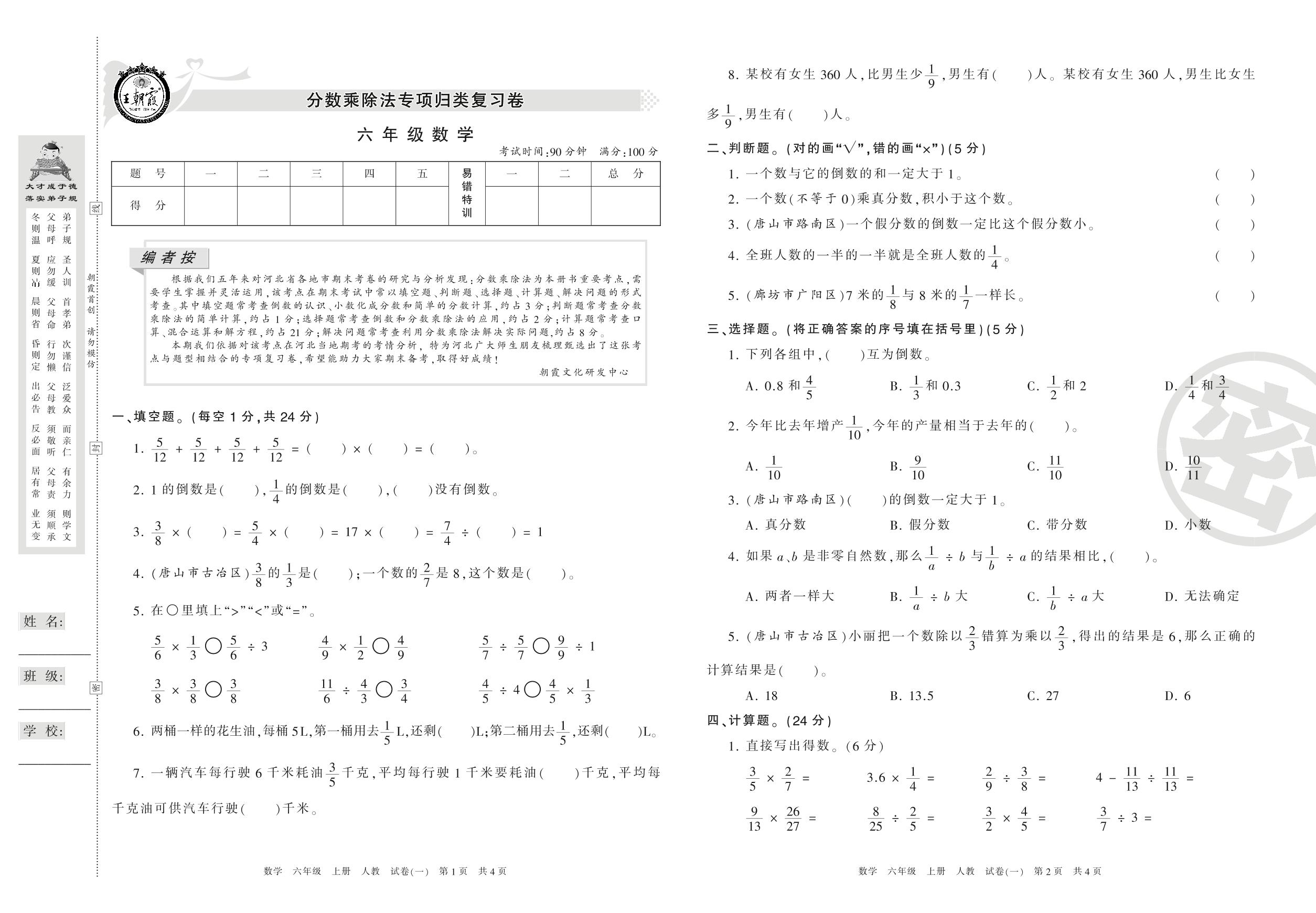 王朝霞期末专项卷六年级上册数学(人教版)_R210805104240【1】