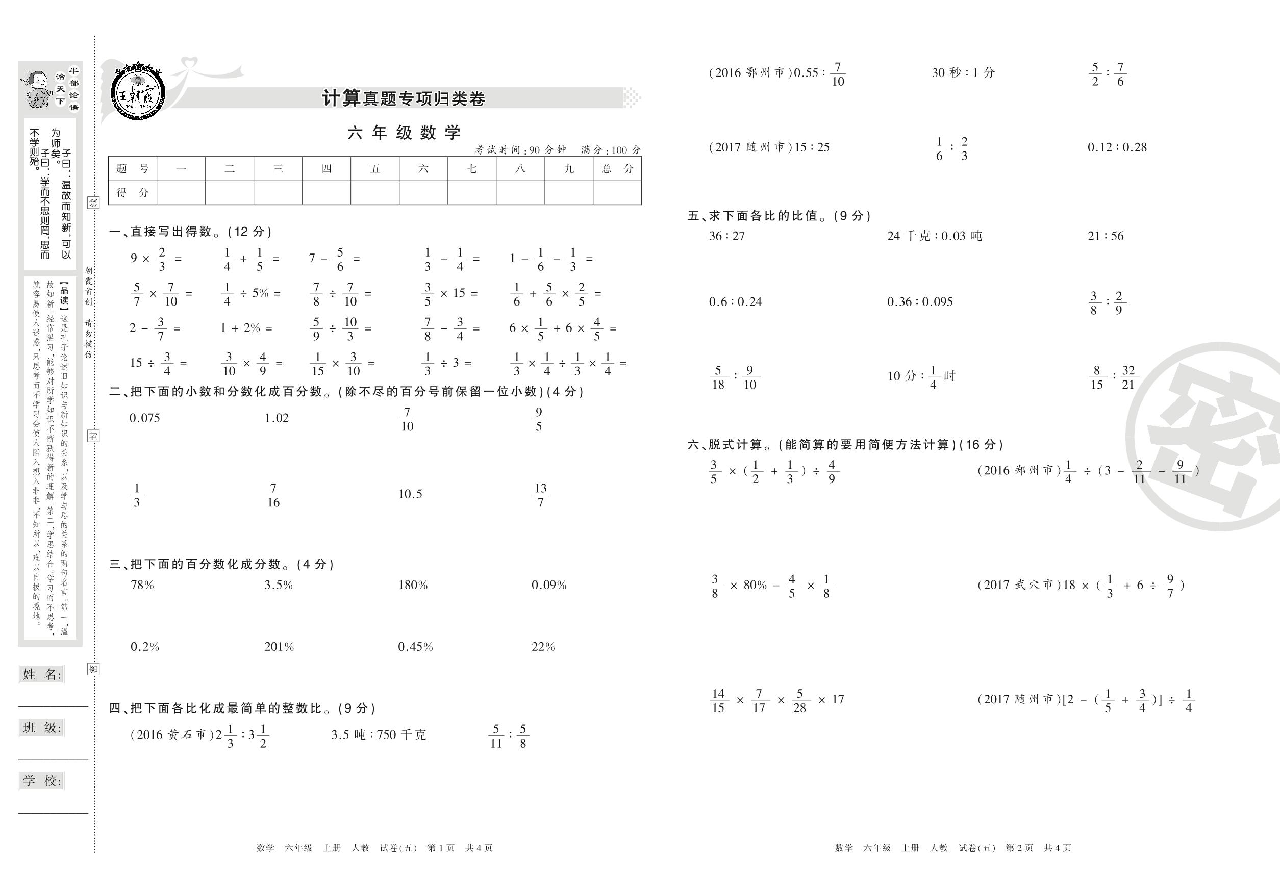 王朝霞期末专项卷六年级上册数学(人教版)_R210805104605【5】