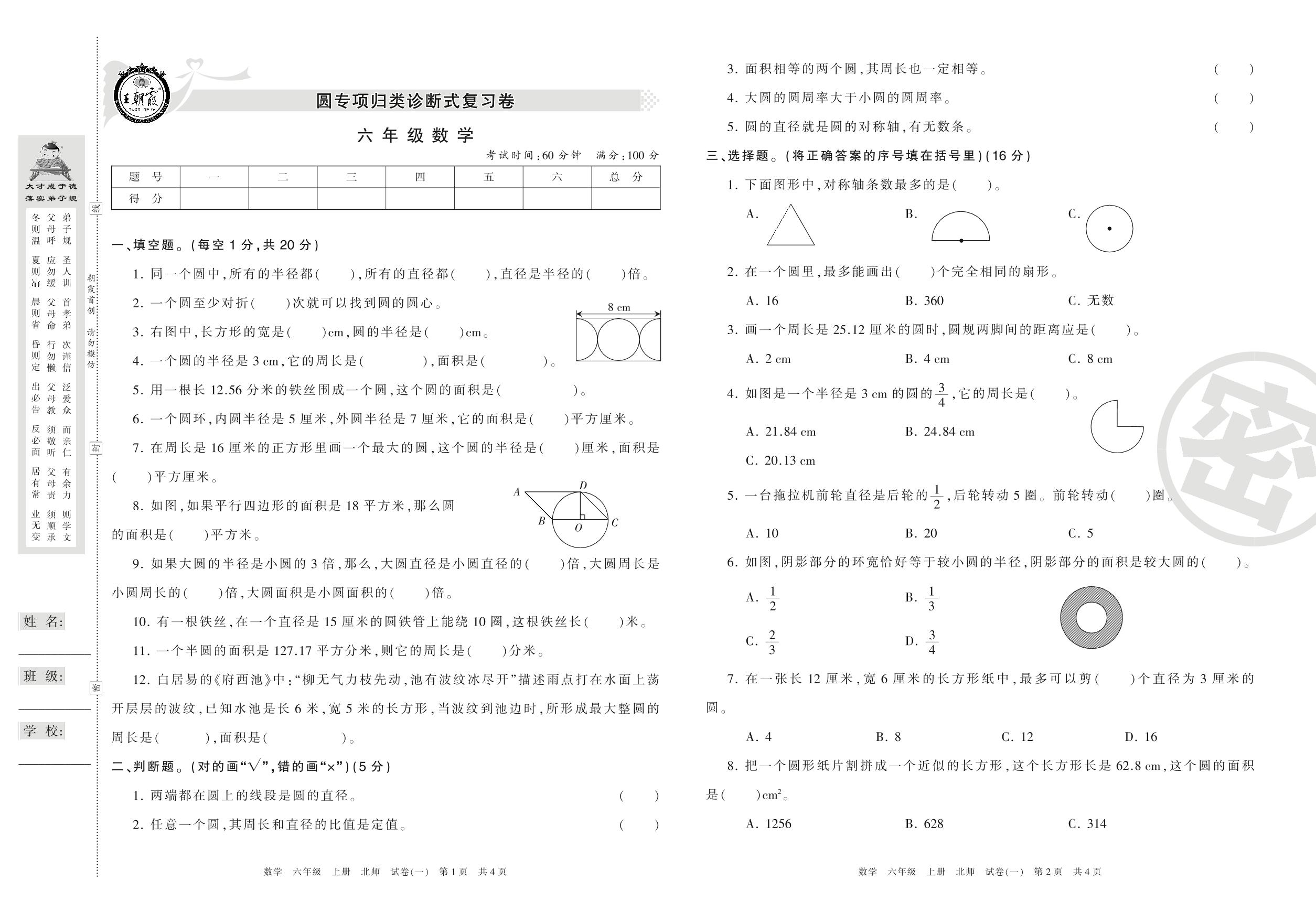 王朝霞期末专项卷六年级上册数学(北师版)_R210805104811【1】