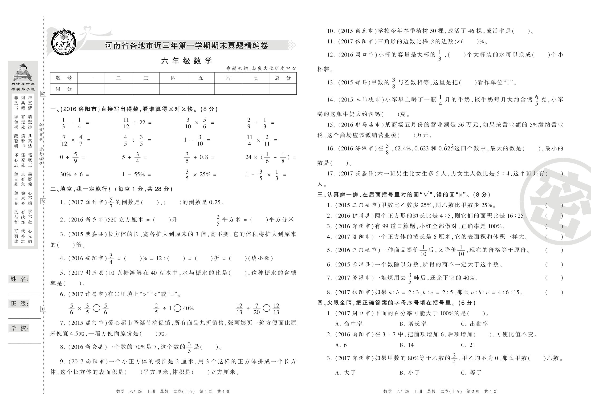 精编卷六年级上册数学(苏教版)【15】